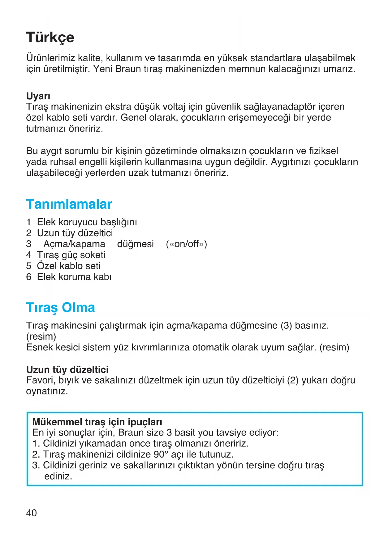için üretilmiştir. Yeni Braun tıraş makinenizden memnun kalacağınızı umarız.