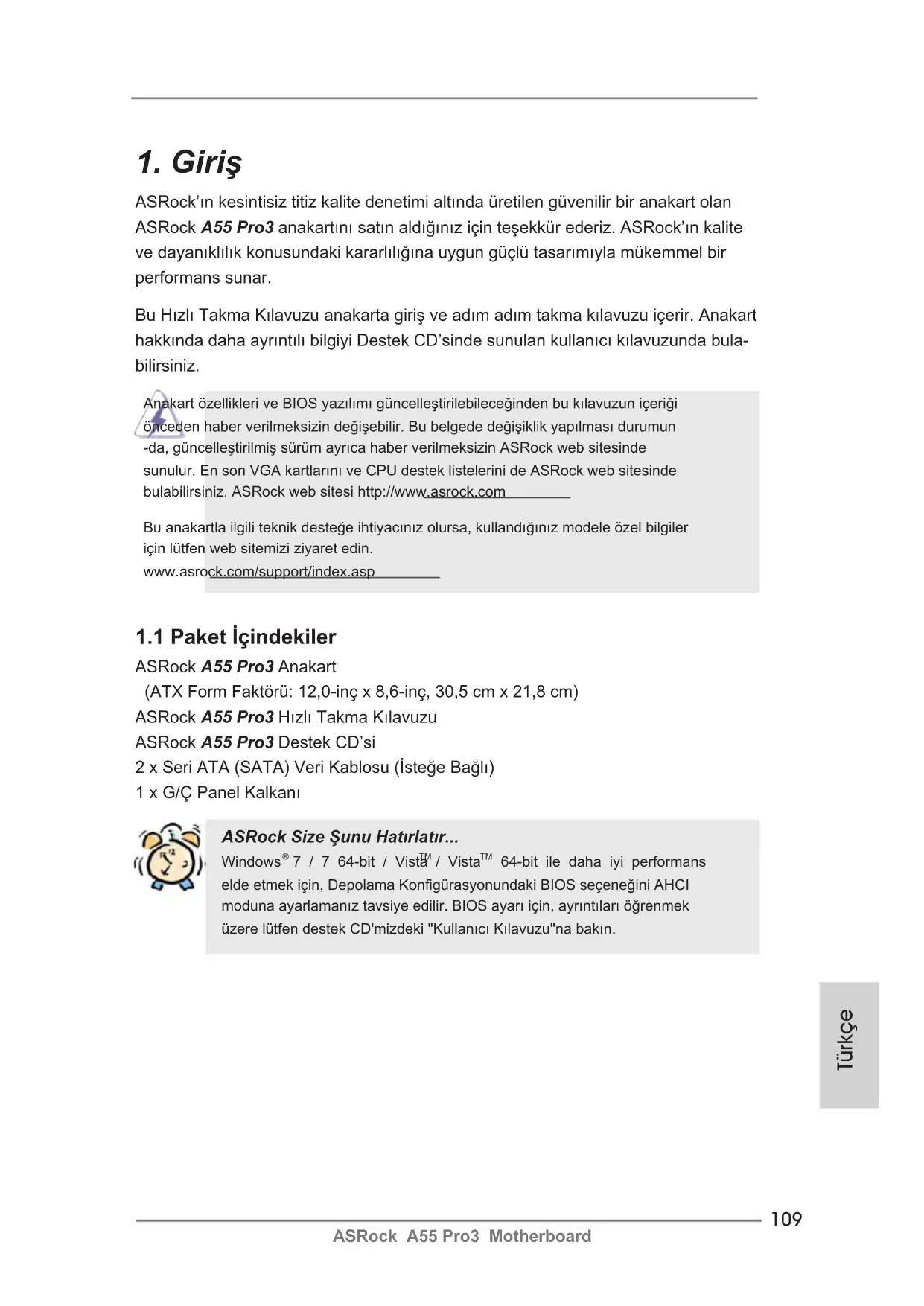 ASRock A55 Pro3 anakartını satın aldığınız için teşekkür ederiz. ASRock’ın kalite