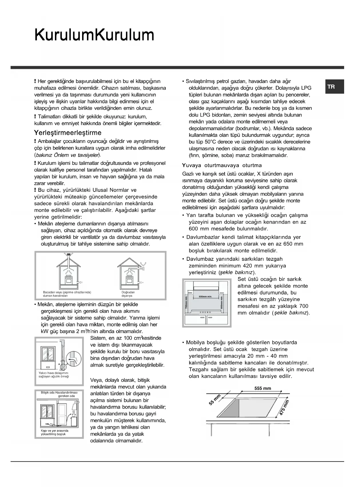 Gazla çalýþan cihazlarGazla çalýþan cihazlar Gazla çalýþan cihazlarGazla çalýþan cihazlar Gazla çalýþan cihazlar , düzgün bir çalýþma, düzgün bir çalýþma , düzgün bir çalýþma, düzgün bir çalýþma , düzgün bir çalýþma için düzenli hava deðiþimine ihtiyaçiçin düzenli hava deðiþimine ihtiyaç için düzenli hava deðiþimine ihtiyaçiçin düzenli hava deðiþimine ihtiyaç için düzenli hava deðiþimine ihtiyaç duyarlarduyarlar duyarlarduyarlar duyarlar . Montaj sýrasýnda “Y. Montaj sýrasýnda “Y . Montaj sýrasýnda “Y. Montaj sýrasýnda “Y . Montaj sýrasýnda “Y erleþtirme”erleþtirme” erleþtirme”erleþtirme” erleþtirme” bölümüne iliþkin paragrafta belirtilmiþ olanbölümüne iliþkin paragrafta belirtilmiþ olan bölümüne iliþkin paragrafta belirtilmiþ olanbölümüne iliþkin paragrafta belirtilmiþ olan bölümüne iliþkin paragrafta belirtilmiþ olan þartlara uyulduðundan emin olunuz.þartlara uyulduðundan emin olunuz. þartlara uyulduðundan emin olunuz.þartlara uyulduðundan emin olunuz. þartlara uyulduðundan emin olunuz.