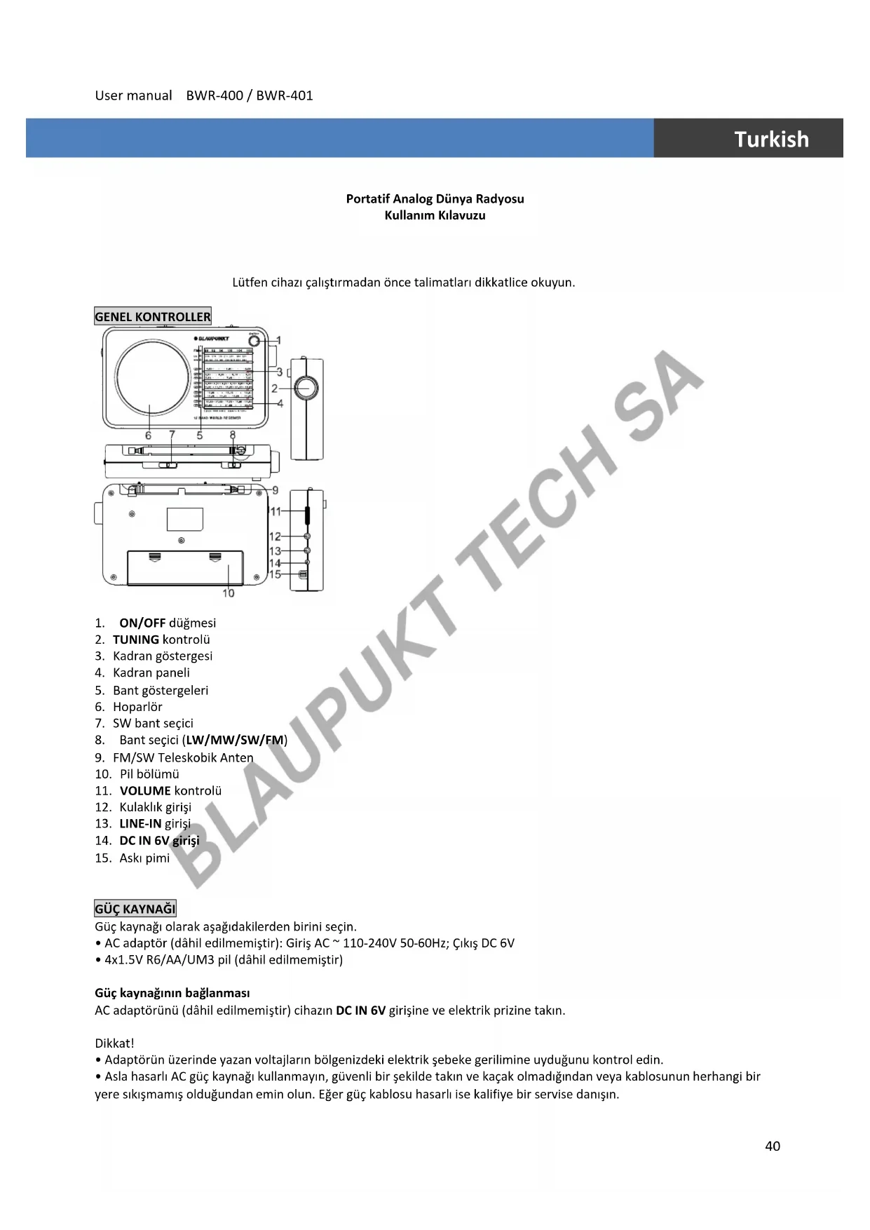 KULLANIM KILAVUZU BWR400 BLAUPUNKT