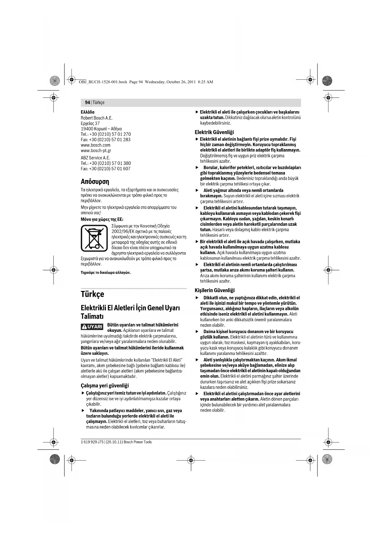 Bosch Power Tools 1 619 929 J75 | (26.10.11)