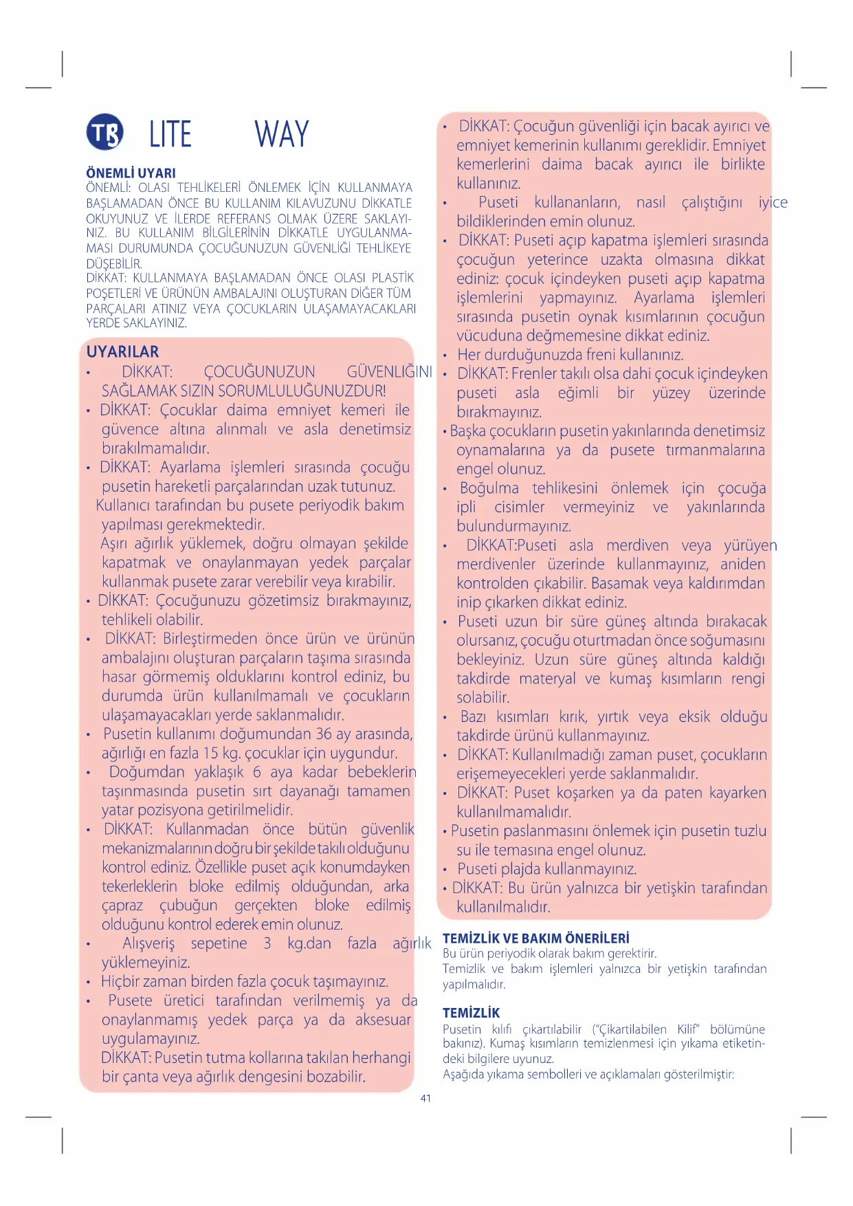 TEMİZLİK Pusetin kılıfı çıkartılabilir (“Çikartilabilen Kilif” bölümüne