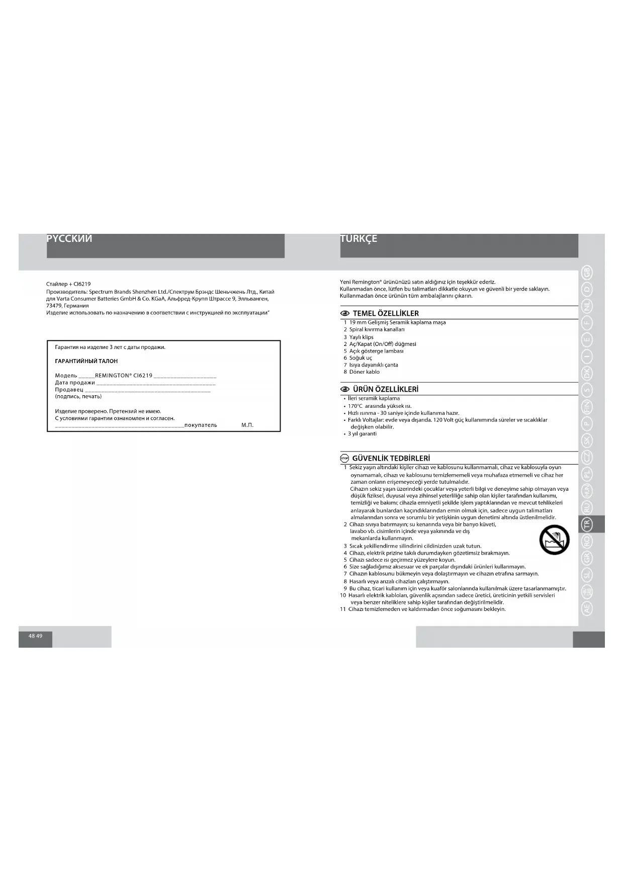 TÜRKÇE Yeni Remington® ürününüzü satın aldığınız için teşekkür ederiz.