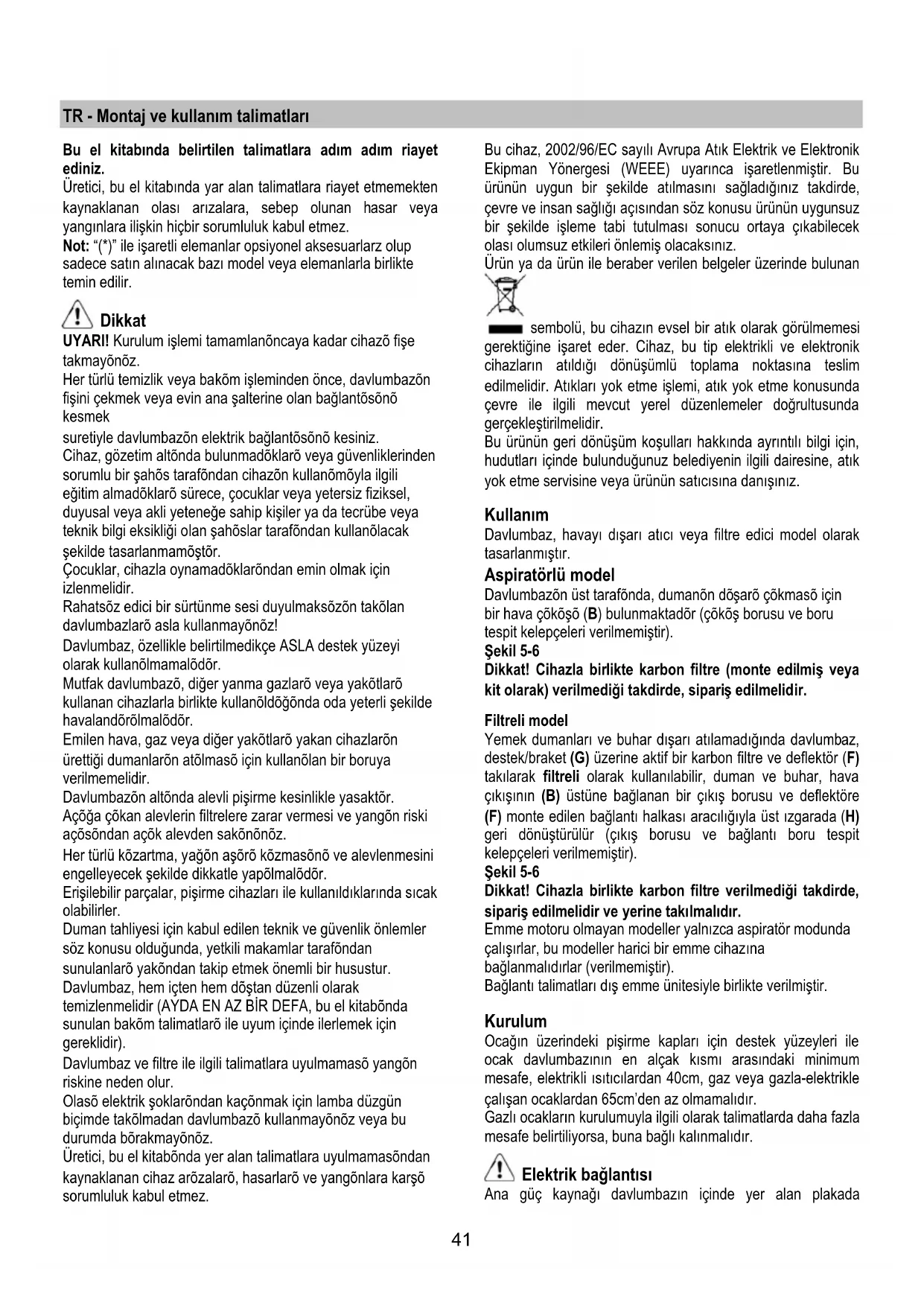 davlumbazlarõ asla kullanmayõnõz!