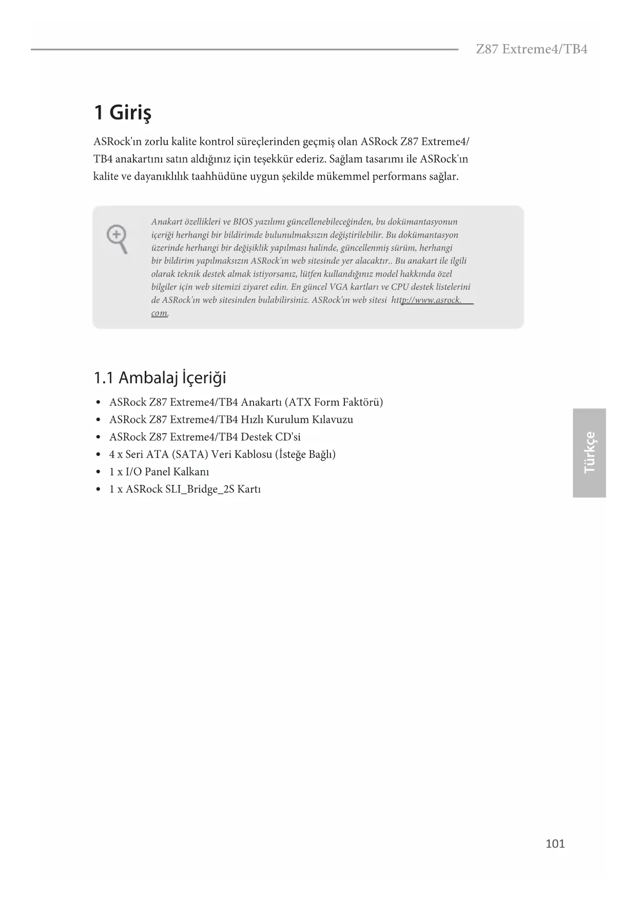 ASRock Z87 Extreme4/TB4 Hızlı Kurulum Kılavuzu