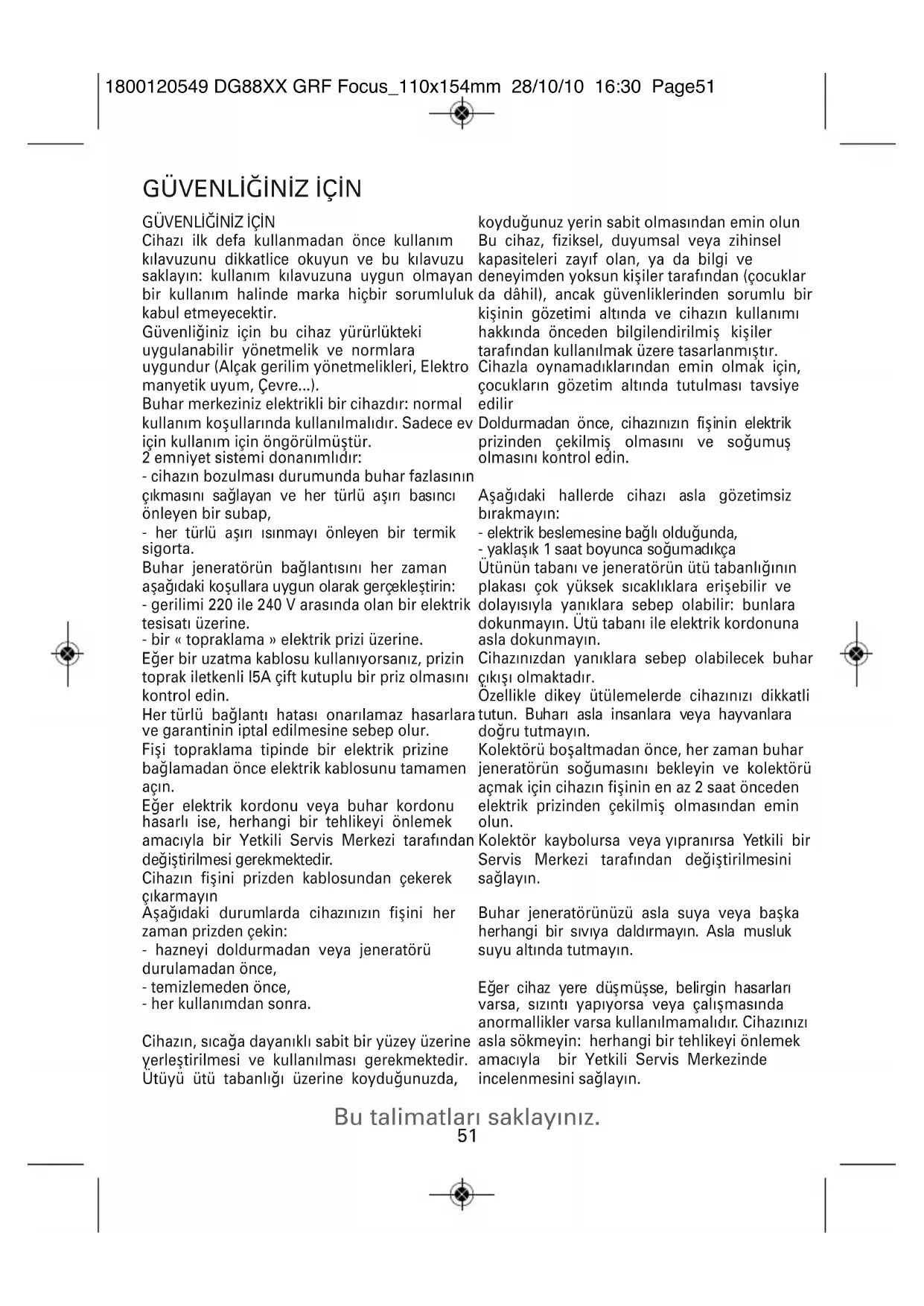 GÜVENLİĞİNİZ İÇİN Bu talimatları saklayınız.