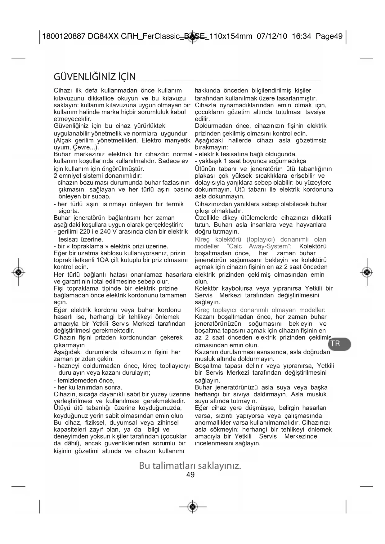 GB F D NL I E P GR TR Bu talimatları saklayınız.