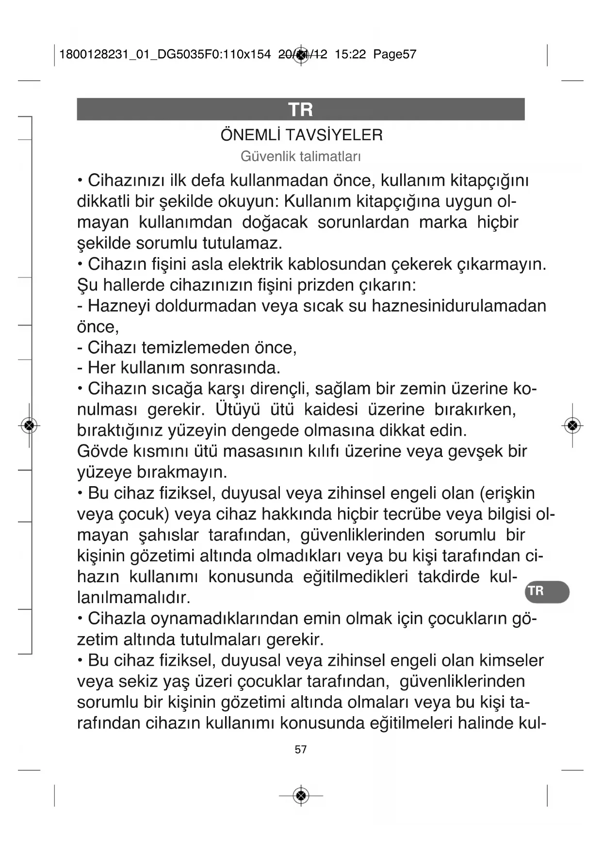 ÖNEMLİ TAVSİYELER Güvenlik talimatları