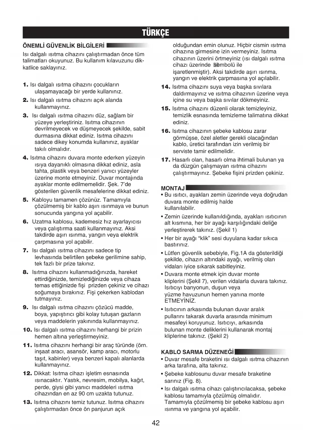 • Lütfen güvenlik sebebiyle, Fig.1A da gösterildi¤i