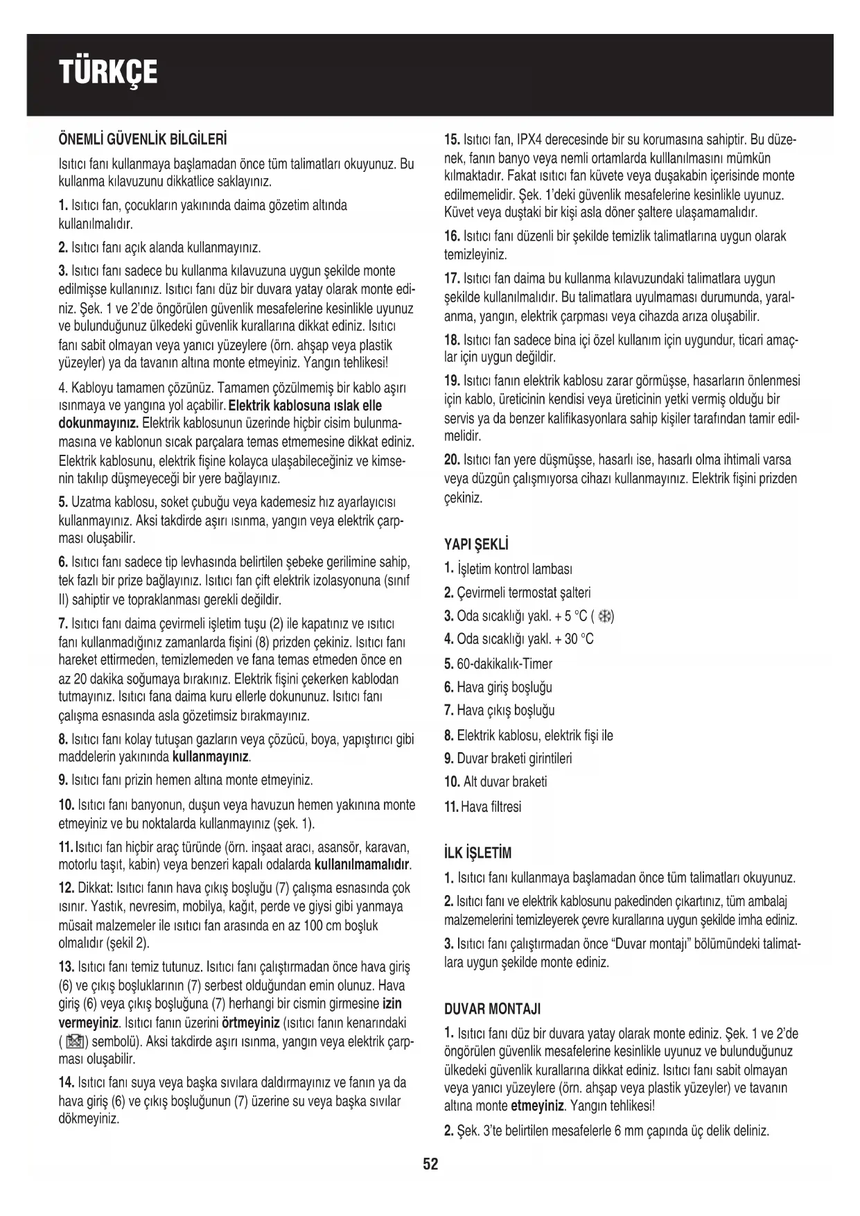 17. Isıtıcı fan daima bu kullanma kılavuzundaki talimatlara uygun