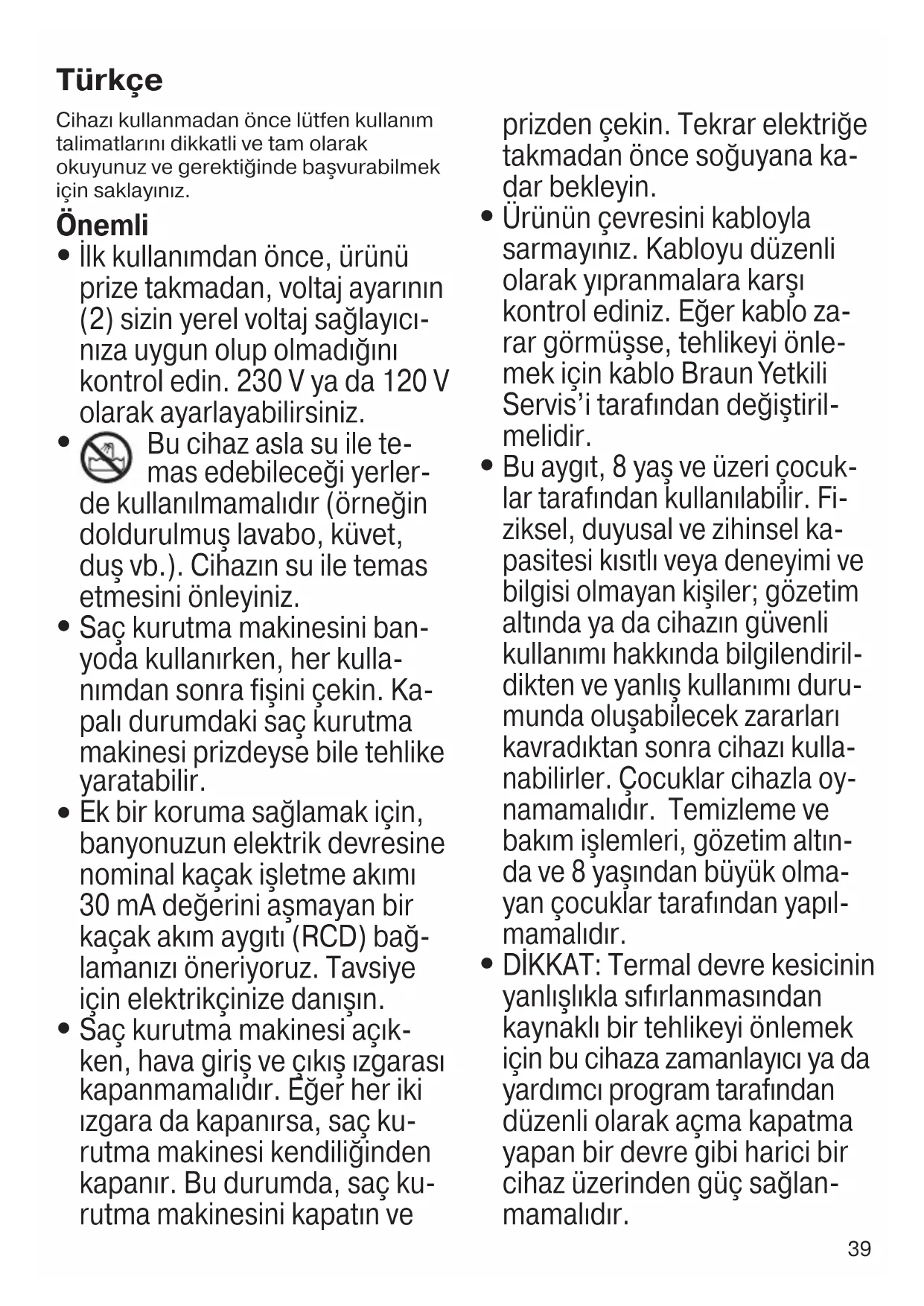 1- BRAUN ürünlerinin kullanma kılavuzunda gösterildiği şekilde kullanılması