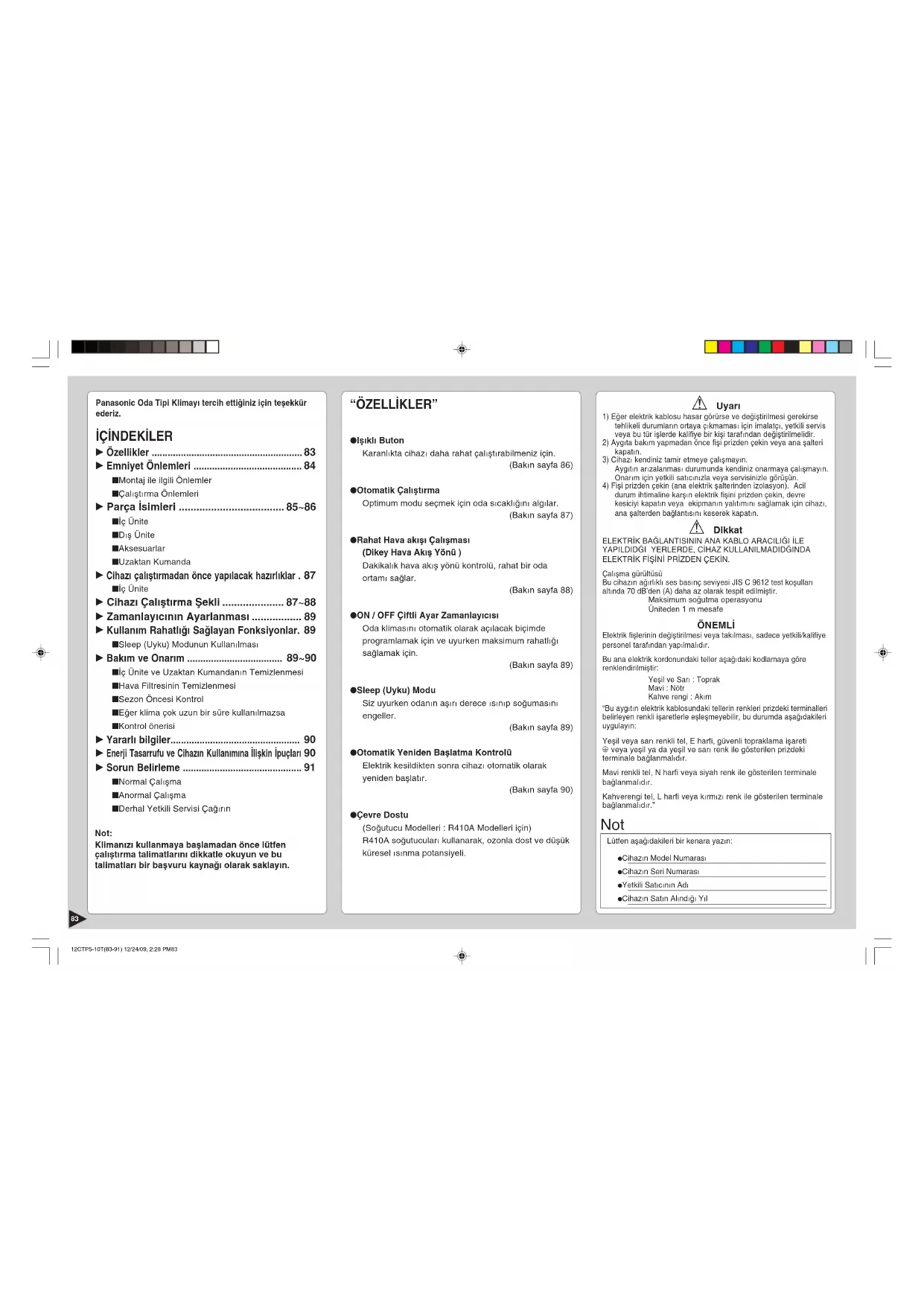 Panasonic Oda Tipi Klimayı tercih ettiğiniz için teşekkürederiz. İÇİNDEKİLER