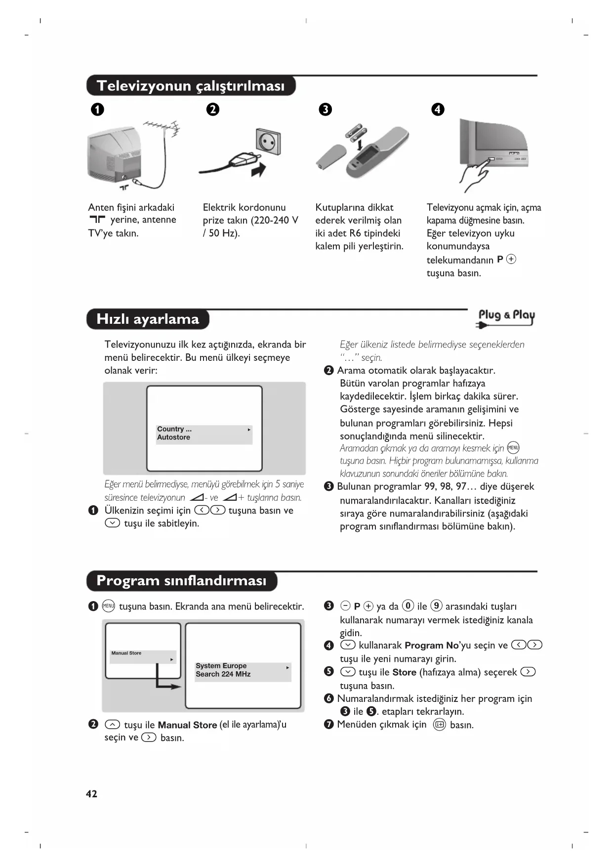 Ï tuflu ile Store (haf›zaya alma) seçerek ¬ tufluna bas›n. § Numaraland›rmak istedi¤iniz her program için “ ile (. etaplar› tekrarlay›n. è Menüden ç›kmak için d bas›n. Country ... AutostoreSystem Europe Search 224 MHzManual Store Æ43