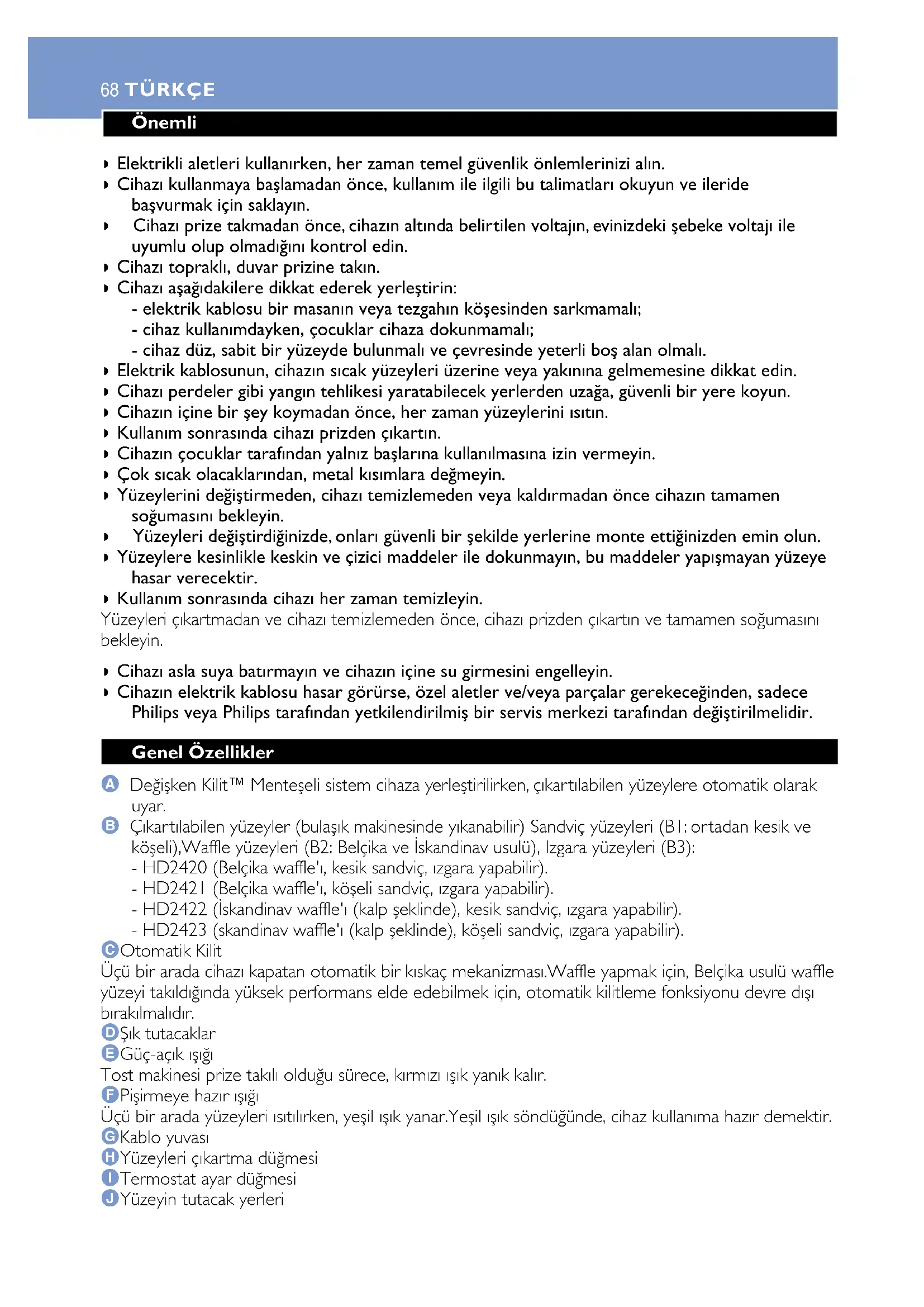 - HD2420 (Belçika waffle', kesik sandvic, izgara yapabilir).