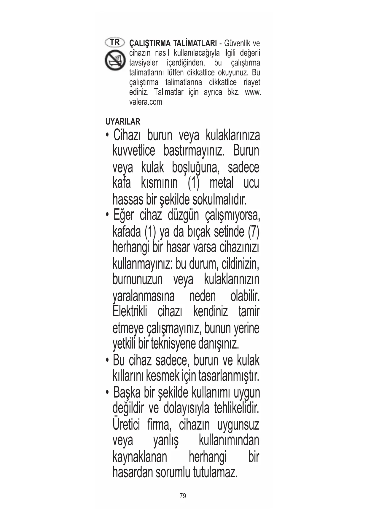 - Bu cihaz sadece, burun ve kulak kıllarını kesmek için tasarlanmıştır.