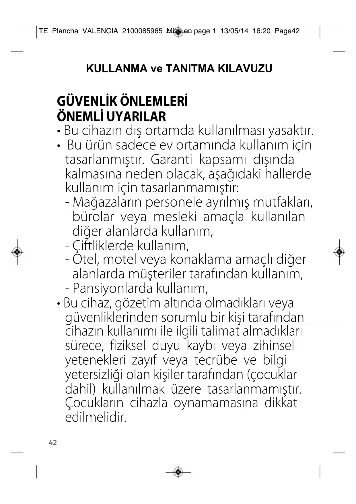 Bu cihaz harici bir zamanlayıcı veya ayrı bir TE_Plancha_VALENCIA_2100085965_Mise en page 1 13/05/14 16:20 Page4344 uzaktan kumanda sistemiyle kullanılabilecek şekilde tasarlanmamıştır.