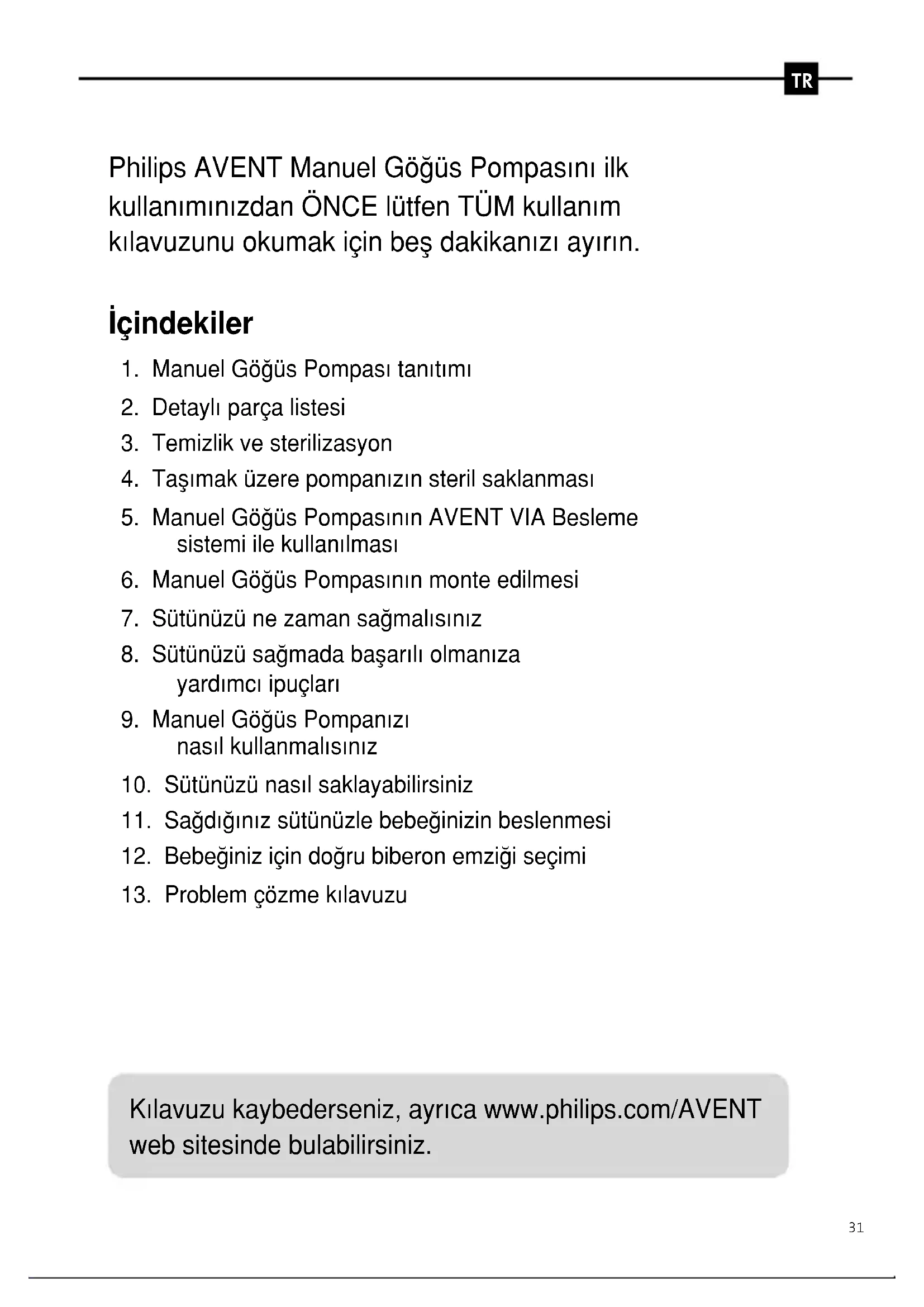 Kılavuzu kaybederseniz, ayrıca www.philips.com/AVENT web sitesinde bulabilirsiniz.