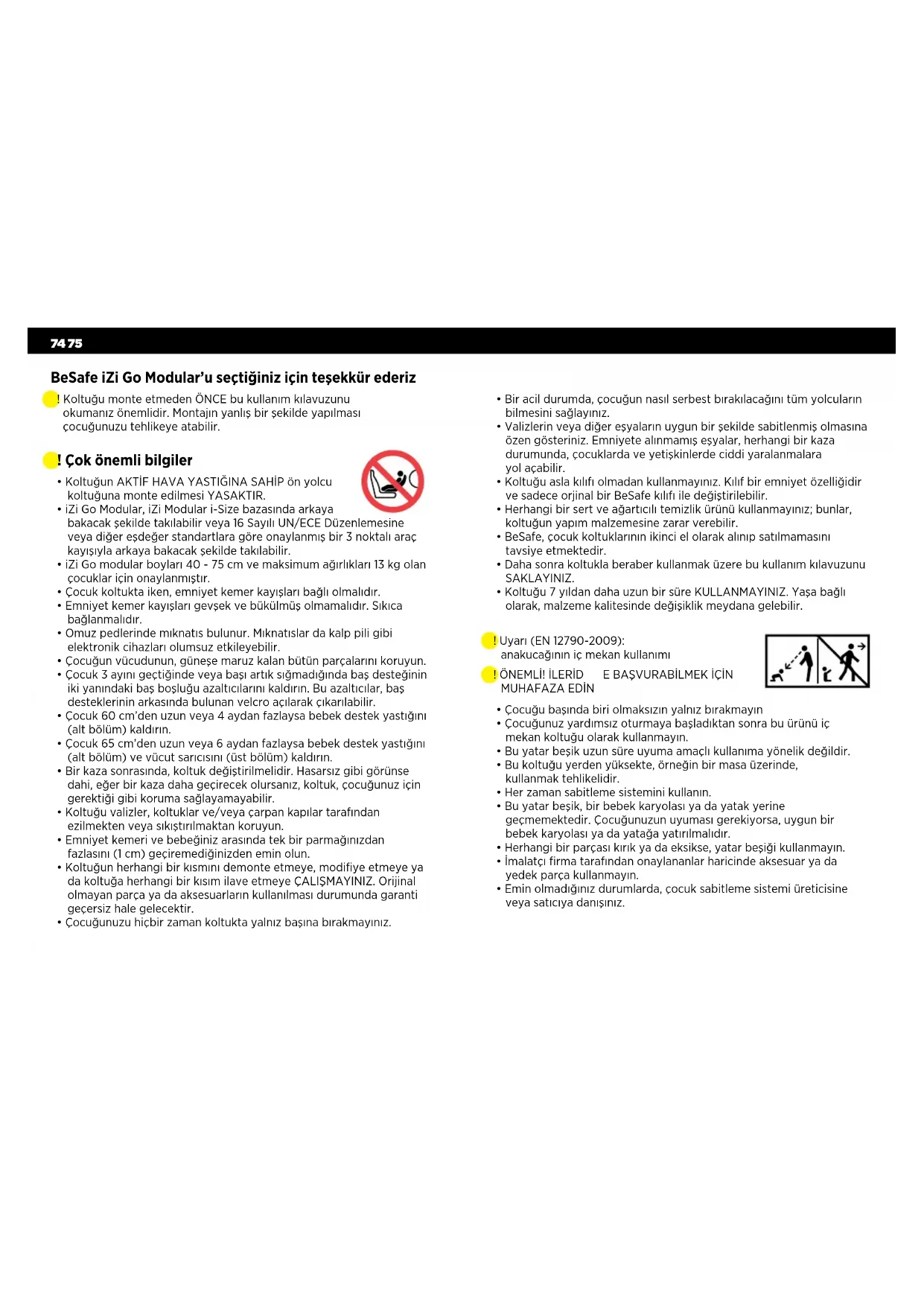 - Çocuğunuzu hiçbir zaman koltukta yalnız başına bırakmayınız. BeSafe iZi Go Modular’u seçtiğiniz için teşekkür ederiz ! Koltuğu monte etmeden ÖNCE bu kullanım kılavuzunu okumanız önemlidir. Montajın yanlış bir şekilde yapılması çocuğunuzu tehlikeye atabilir.