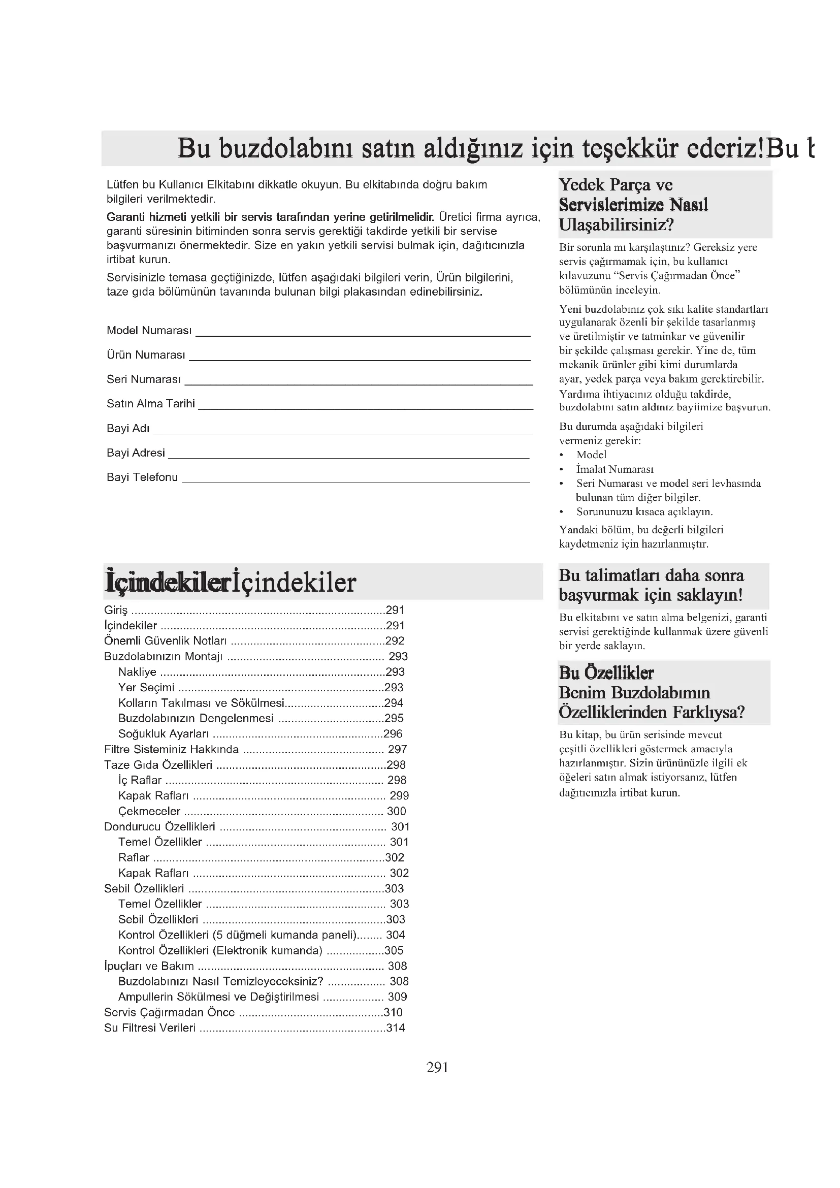 Yeni buzdo bilin cok sik kalite standartlan uygulanarak ozenli bir sekilde tasarlanmis ve ureilmistir ve tatminkar ve guvenilir bir sekilde calisması gerekir.Yine de,tum mekanik urnler gibi kimi durumlarda ayar,yedek parca vya bakim gerektirebiril. Yardima ihtiyacimiz oldugu takdirde, buzdo bilin satin aldimz bayiimize basyurun.
