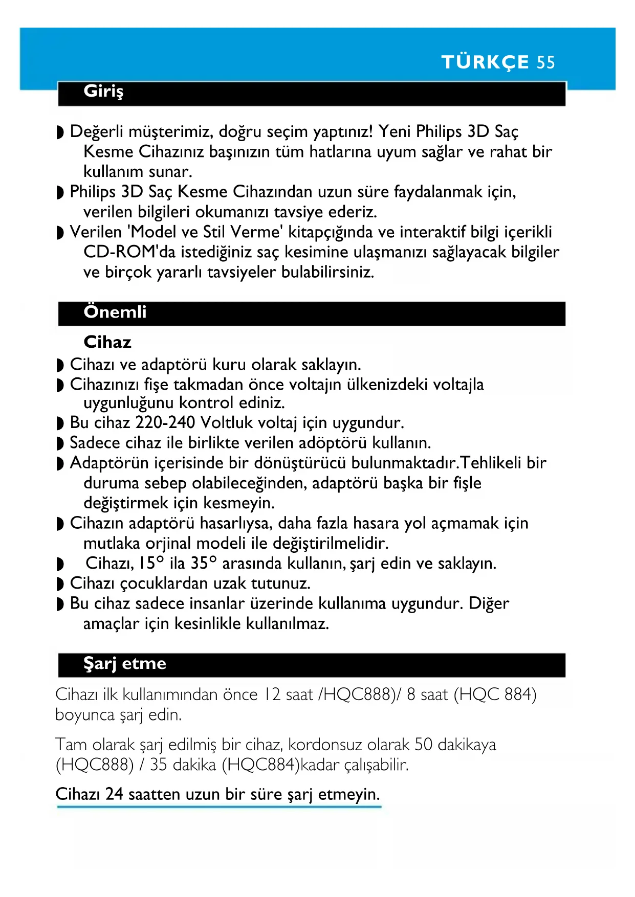 KULLANIM KILAVUZU HQC884 PHILIPS