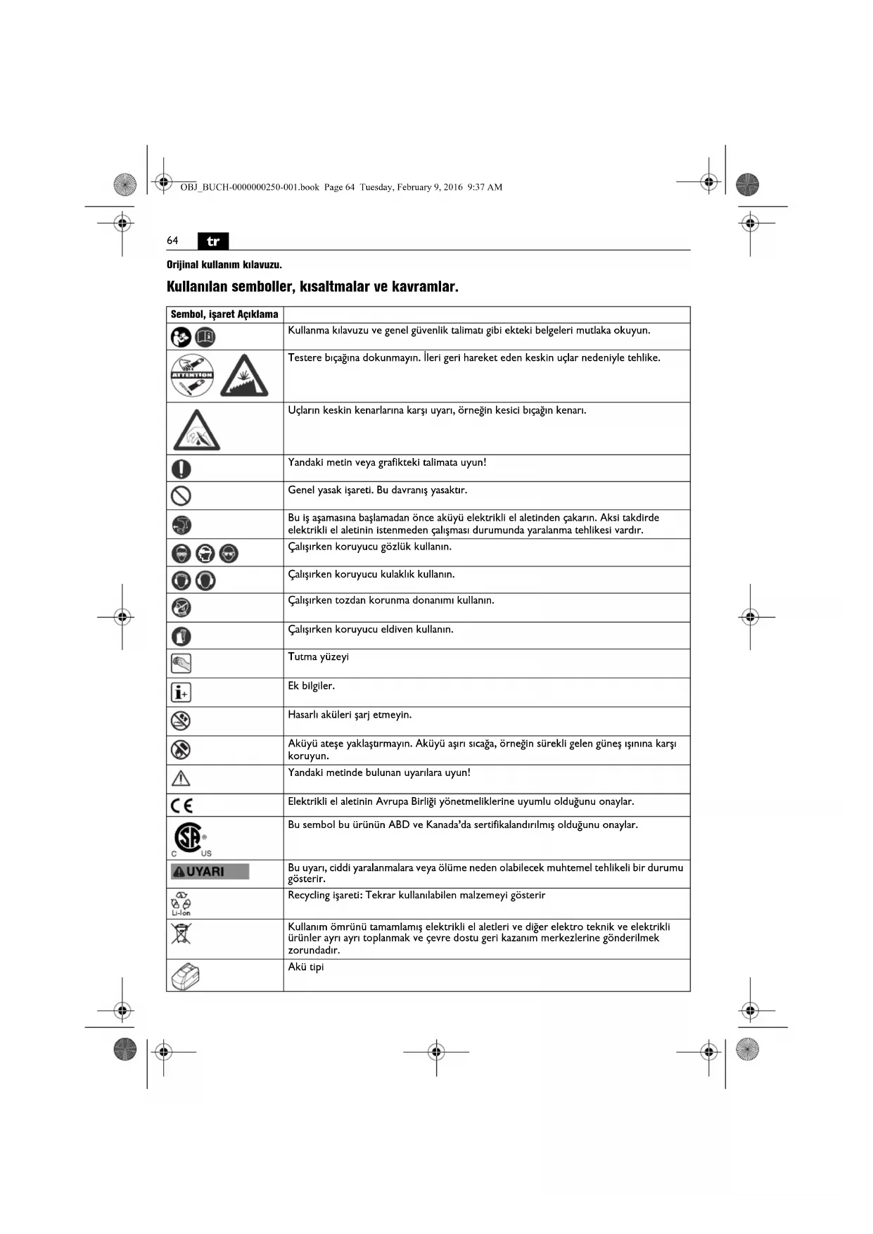| ATTENTION | Testere次会议a dokunmayın. ileri geri hareket eden keskin uzclar nedeniyle tehlike. |