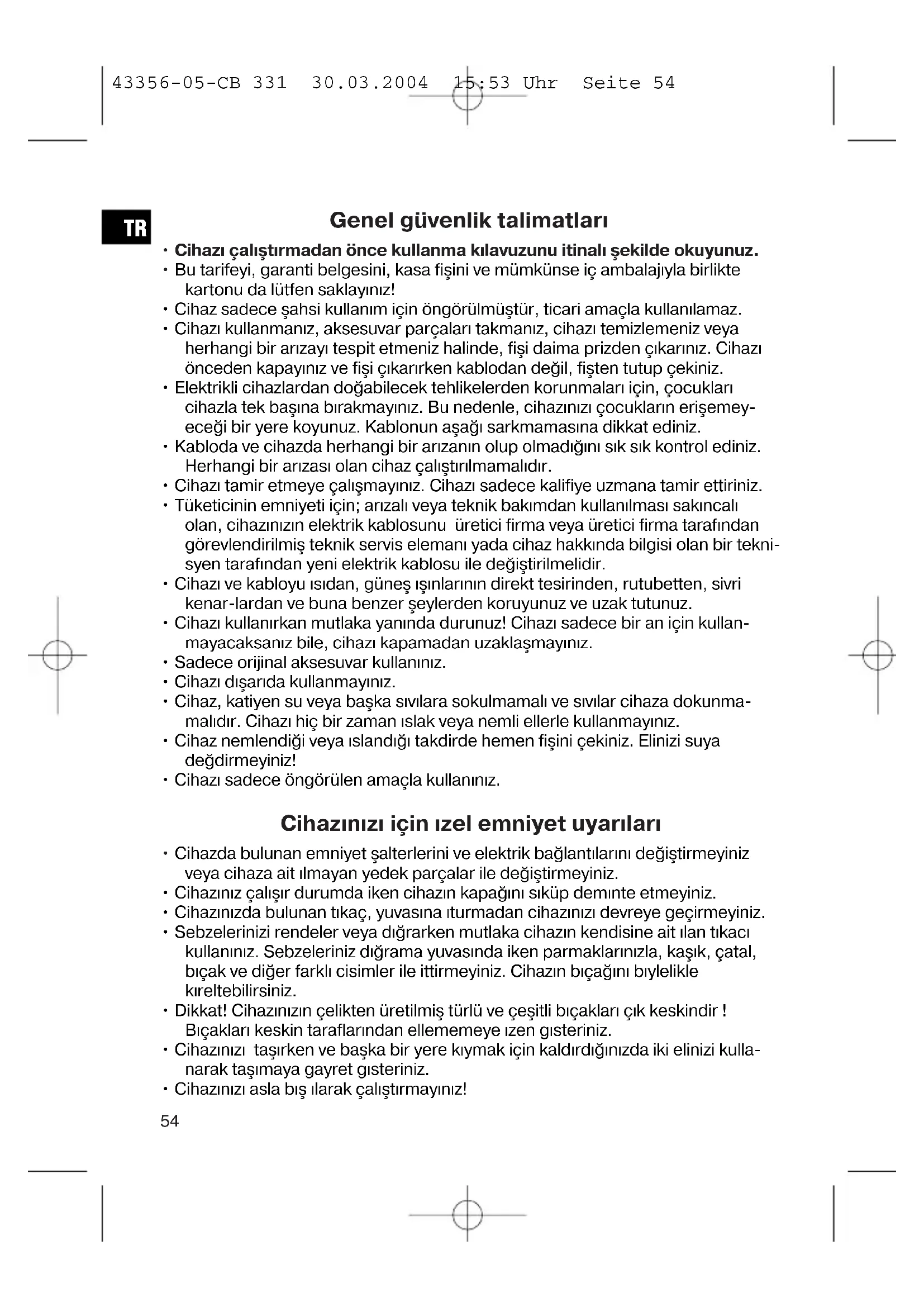 - Cihazınızı asla bış ılarak çalıştırmayınız! 43356-05-CB 331 30.03.2004 15:53 Uhr Seite 5455