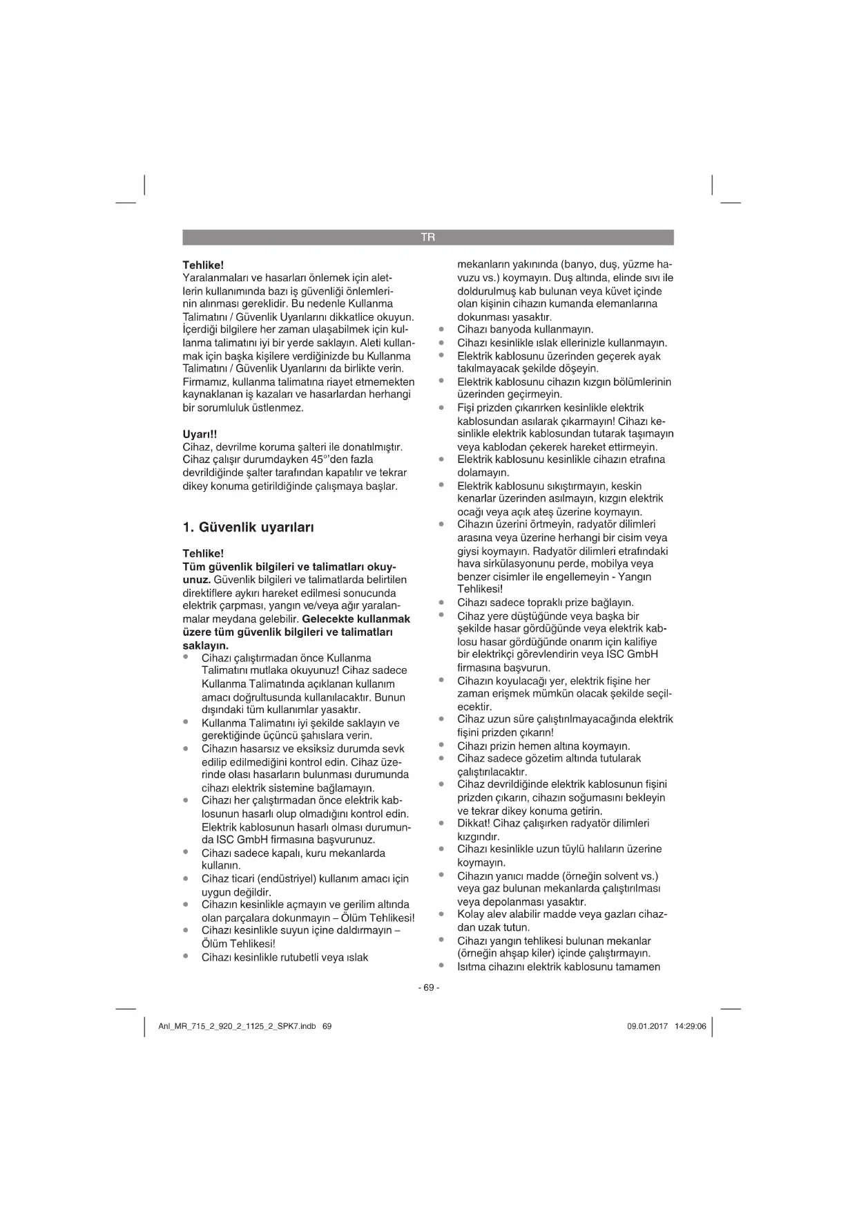 1. Güvenlik uyarıları