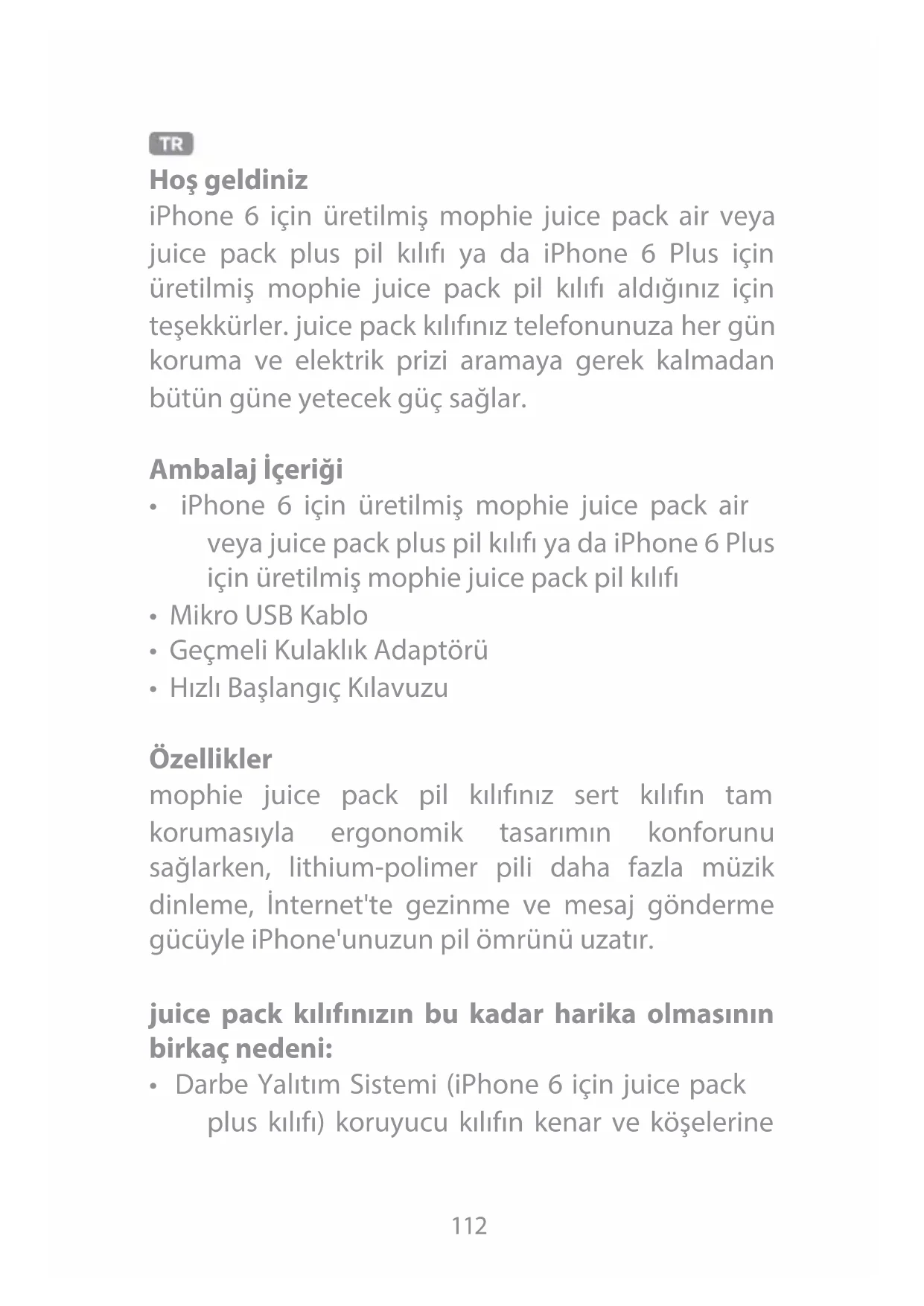 Bu ürünü kullanmadan once buttun talimat ve uyarilari okuyun. Bu ürünün uygunsuz kullanimi ürunde, mophie LLC'nin ("Uretici") degil, sizin ("Alici") sorumlu olacginiz hasara, asiri isiya, zehirli dumanlara, yangin ya da patlamaya neden olabilir.