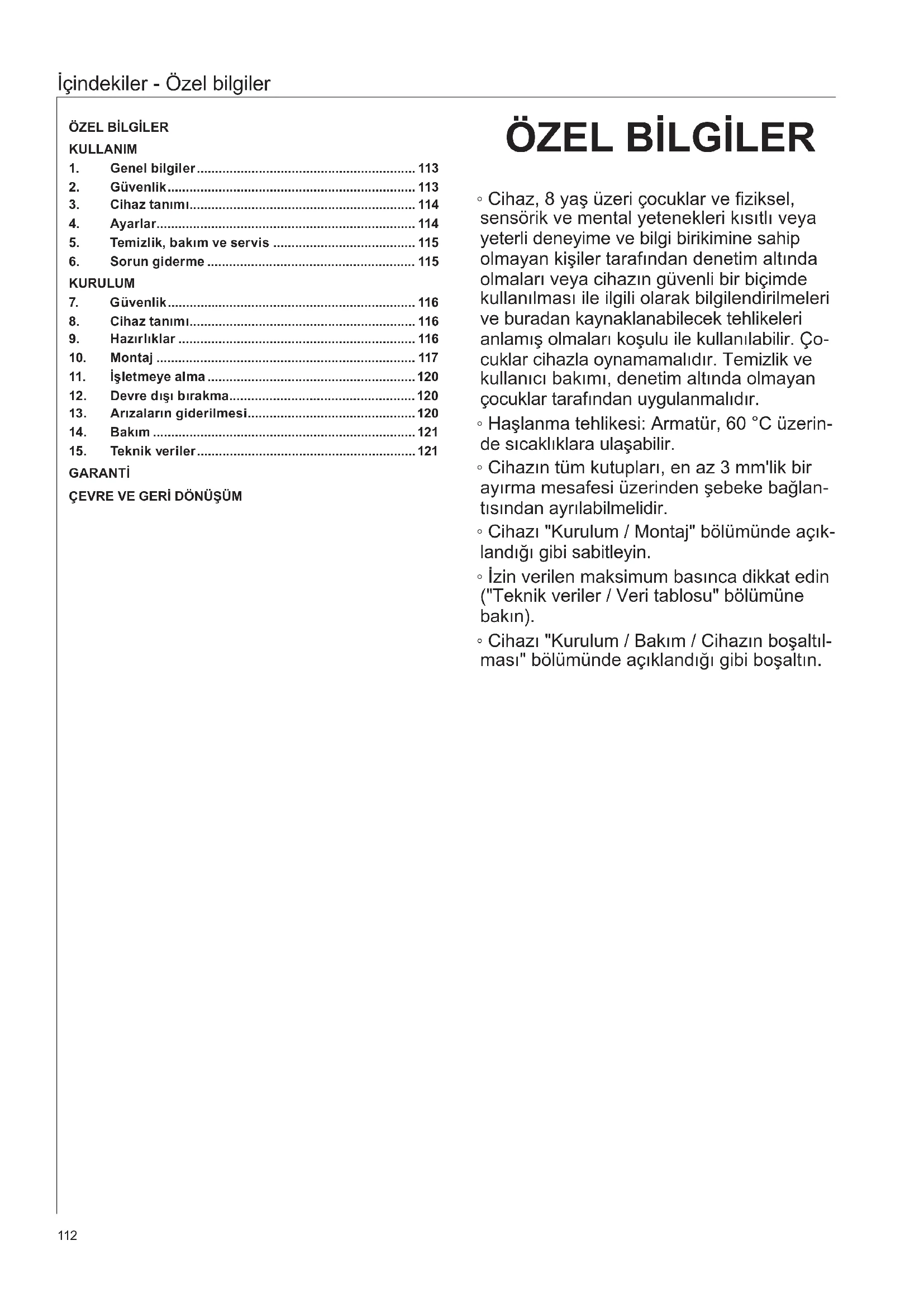 İçindekiler - Özel bilgiler ÖZEL BILGILER KULLANIM