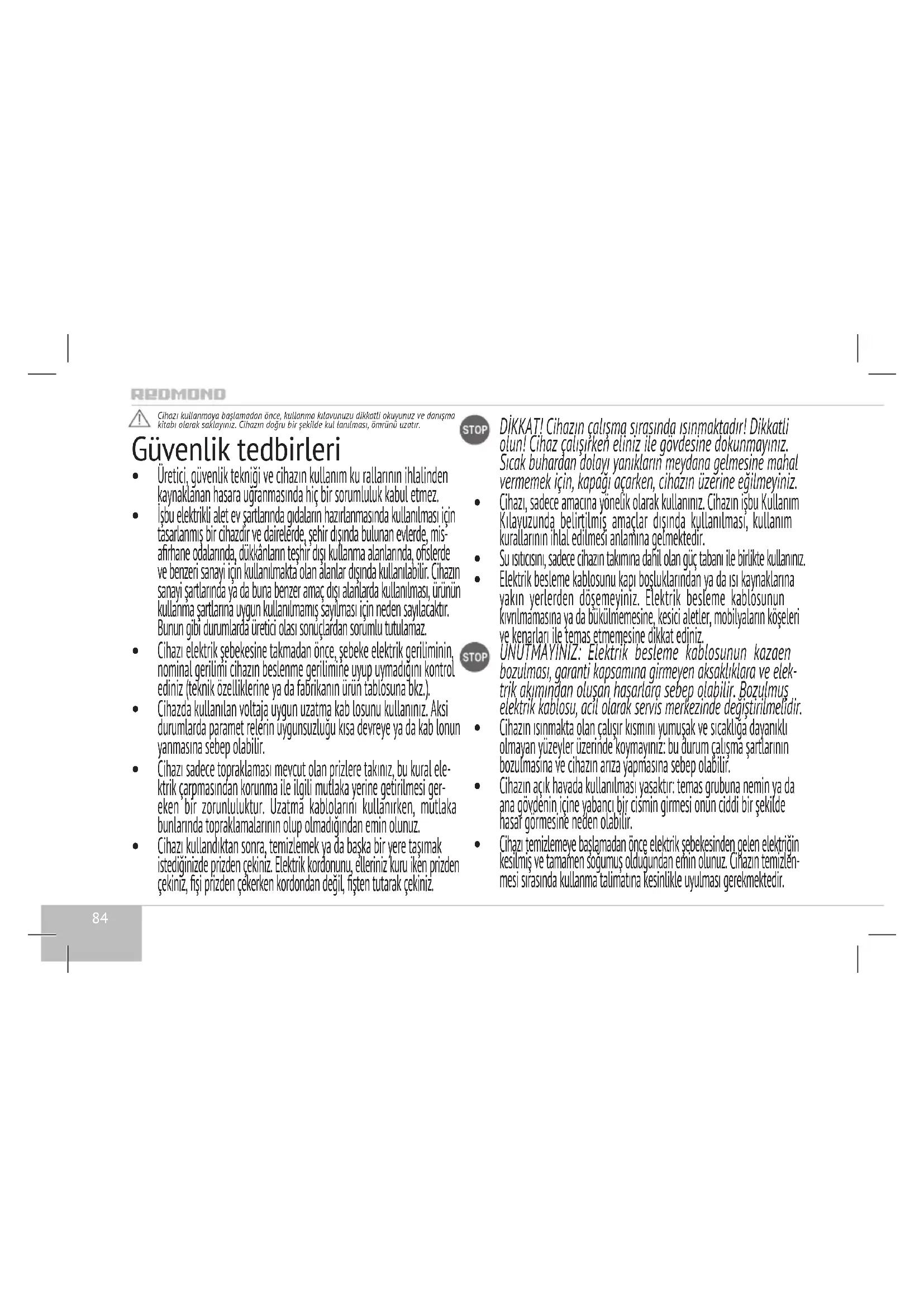 KULLANIM KILAVUZU RKG127E Redmond
