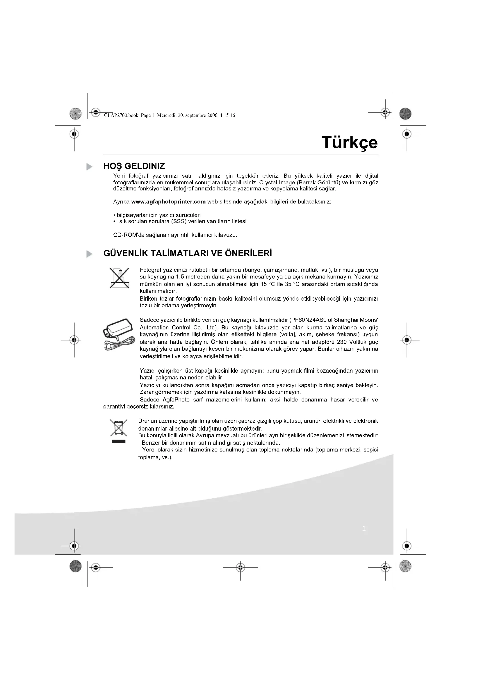 Ayrica www.agfaphotoprinter.com web sitesinde asaigidaki bilgileri de bulacaksiniz: