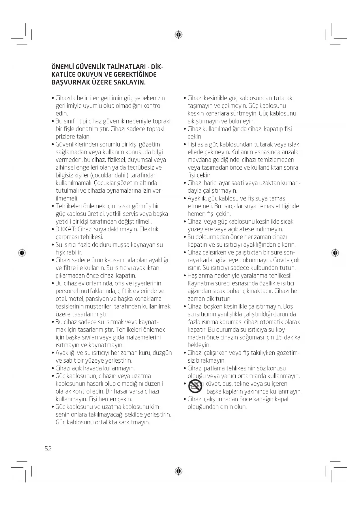 - Bu cihaz sadece su ısıtmak veya kaynat- mak için tasarlanmıştır. Tehlikeleri önlemek için başka sıvıları veya gıda malzemelerini ısıtmayın ve kaynatmayın.