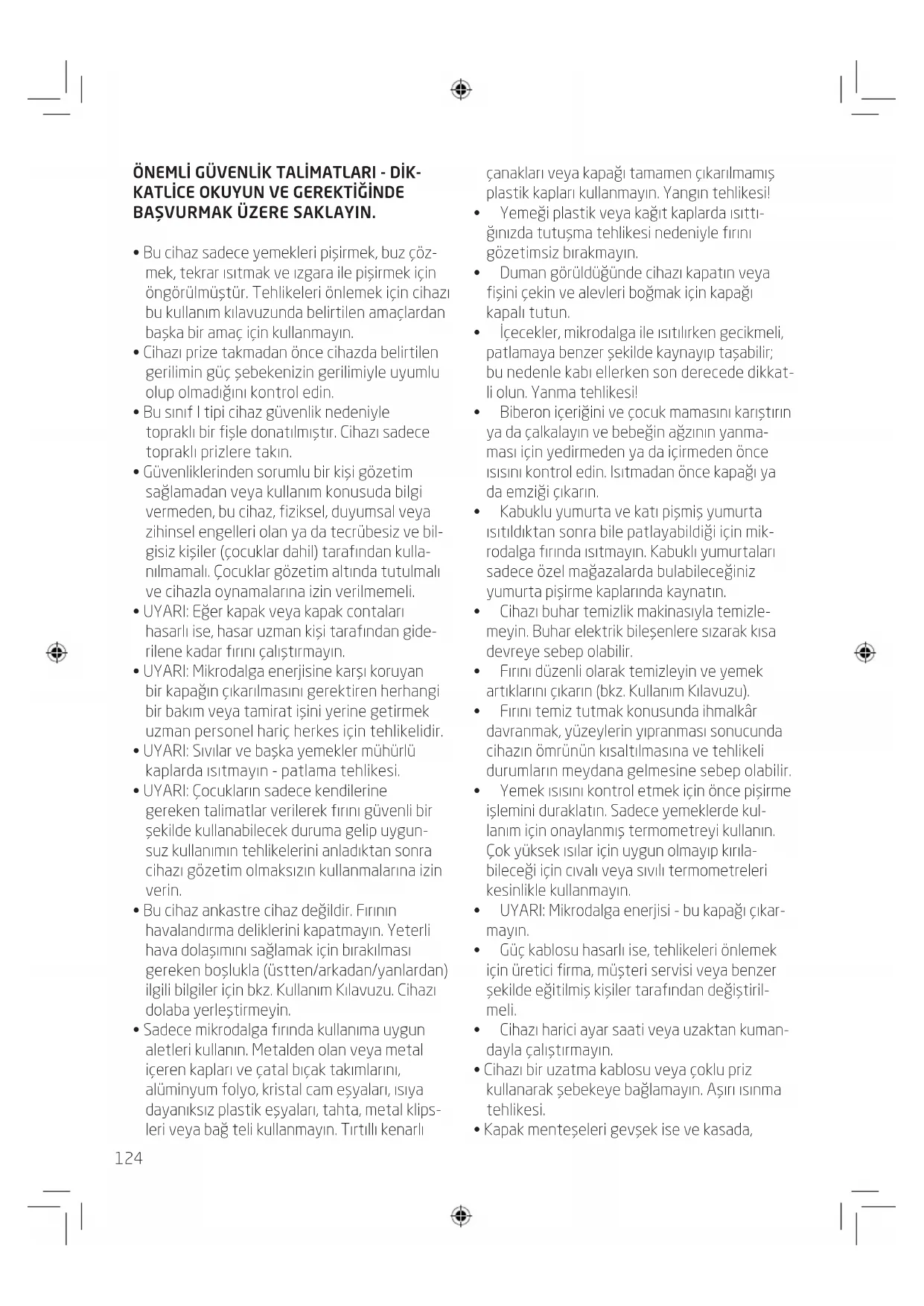 - UYARI:Sıvılarvebaşkayemeklermühürlü kaplarda ısıtmayın - patlama tehlikesi.