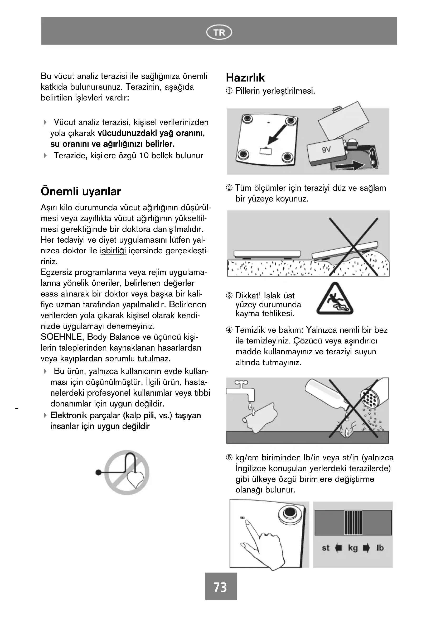 Uyari: Orneigin cihazin yakininda telsizin kullanilmasindan dolayi asiri elektromanyetak esirler, terazide gosterreich degerinin etkilenmesine neden olabilir. Ariza tesirin sona ermesinden sonra urun tekrar usulune uygun olarak kullanilabilir. Bazen terazinin kapatlip yeniden calistirilmasi gerekli olabilir.