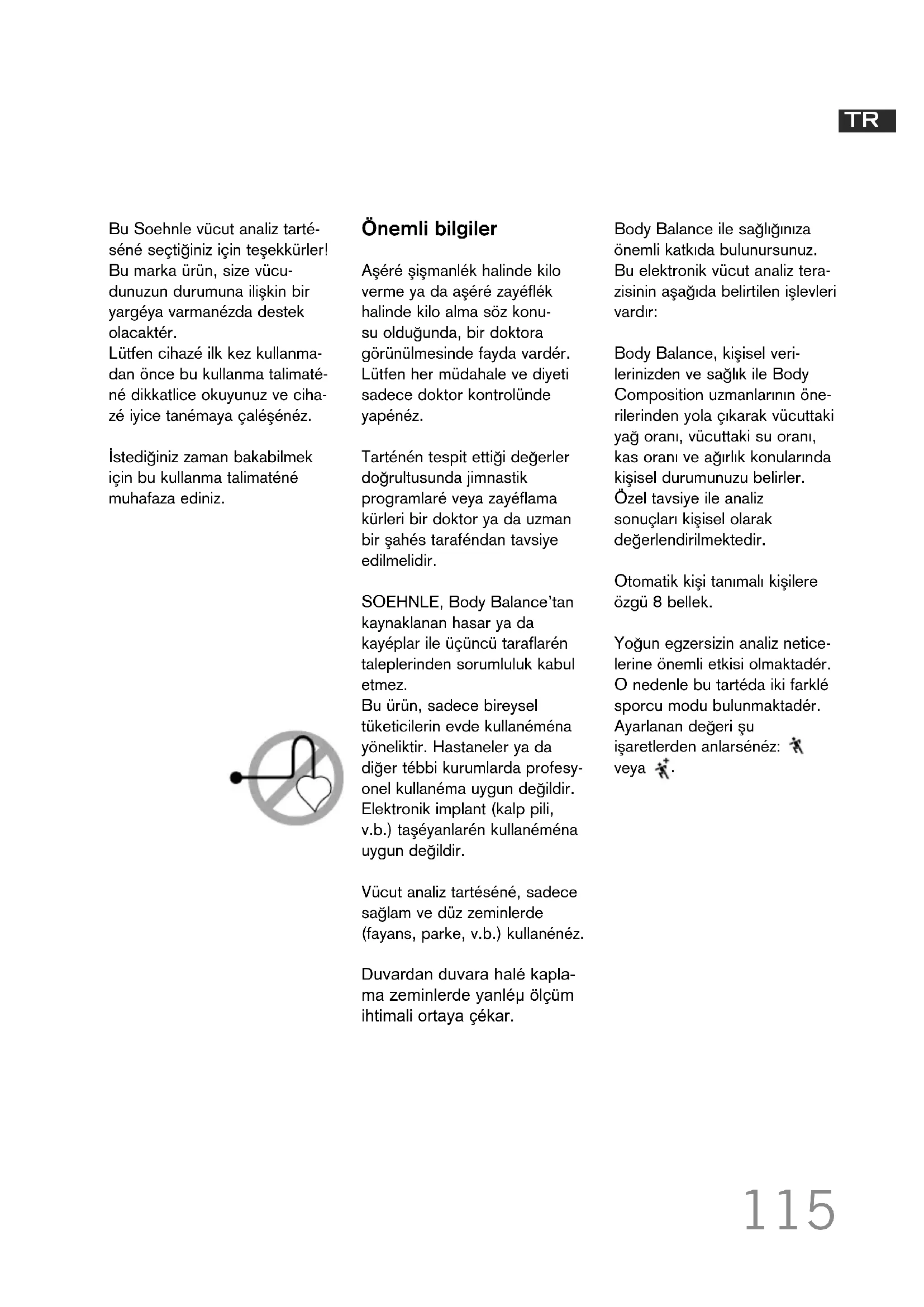 SOEHNLE, Body Balance'tan kaynaklanan hasar ya da kayeplar ile üncu tarafaren taleplerinden sorumluluk kabul etmez.