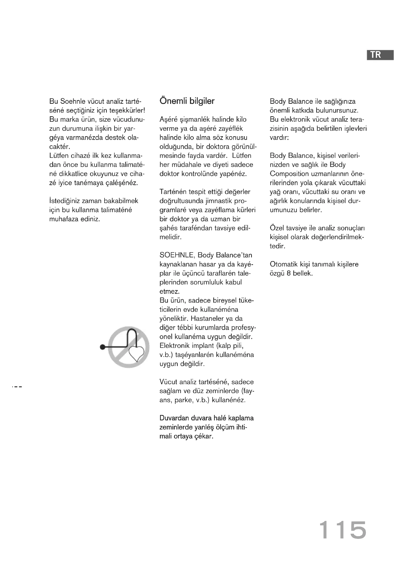 ONEMLI Bu urunun elektronik donaniminda ve godesinde degisiklkerin yapilabmesi icin, Soehnle firmasmin kasin onayi gereklidr. Bu hususun dikkate alinmamasir durumunda, gerektiginde, kullanicin cihazi isletme onayi iptal edebilir.