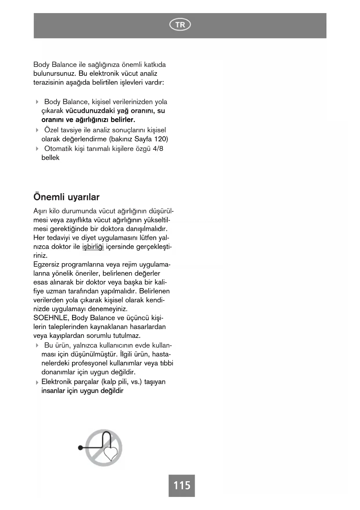 SOEHNLE, Body Balance ve üçuncü kisi-lerin taleplerinden kaynaklanan hasarlardan veya kayiplardan sorumlu tutulmaz.