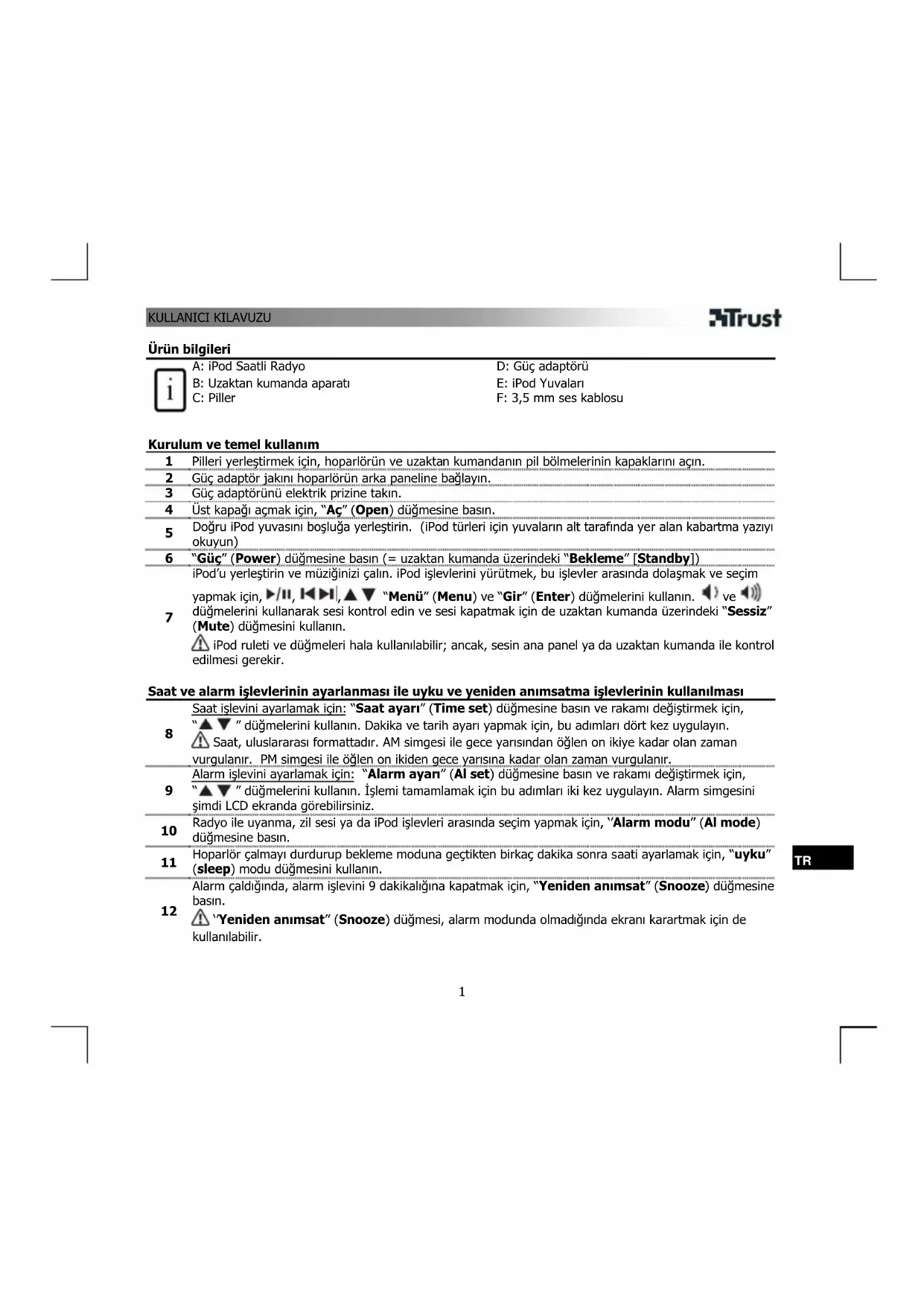 - Bu aygıt, temel gereksinimlere ve uygulanabilir Avrupa yönetmeliklerinin ilgili diğer şartlarına uygundur. Uygunluk Bildirimi (DoC) belgesini www.trust.com/15129/ce Internet adresinde bulabilirsiniz.TR KULLANICI KILAVUZU