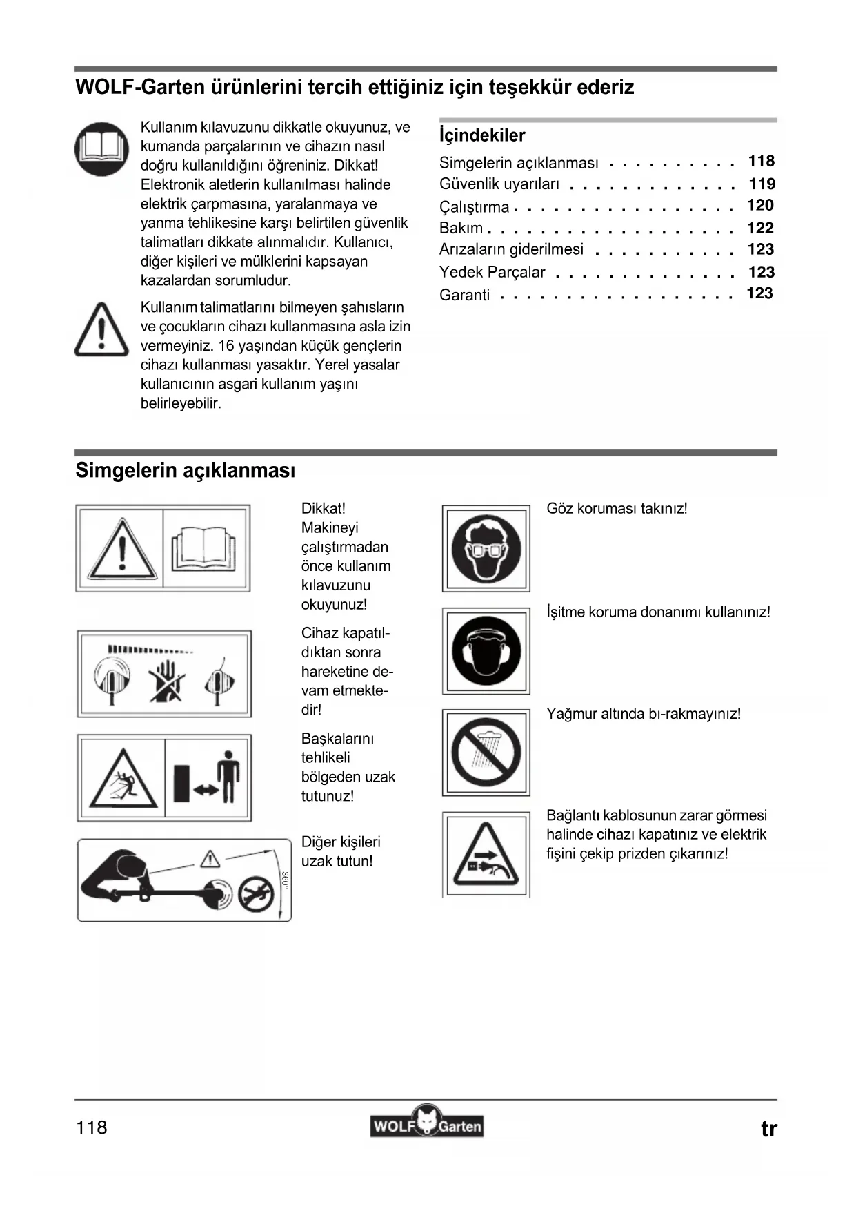 WOLF-Garten ürünlerini tercih ettiğiniz için teşekkür ederiz İçindekiler Simgelerin açıklanması
