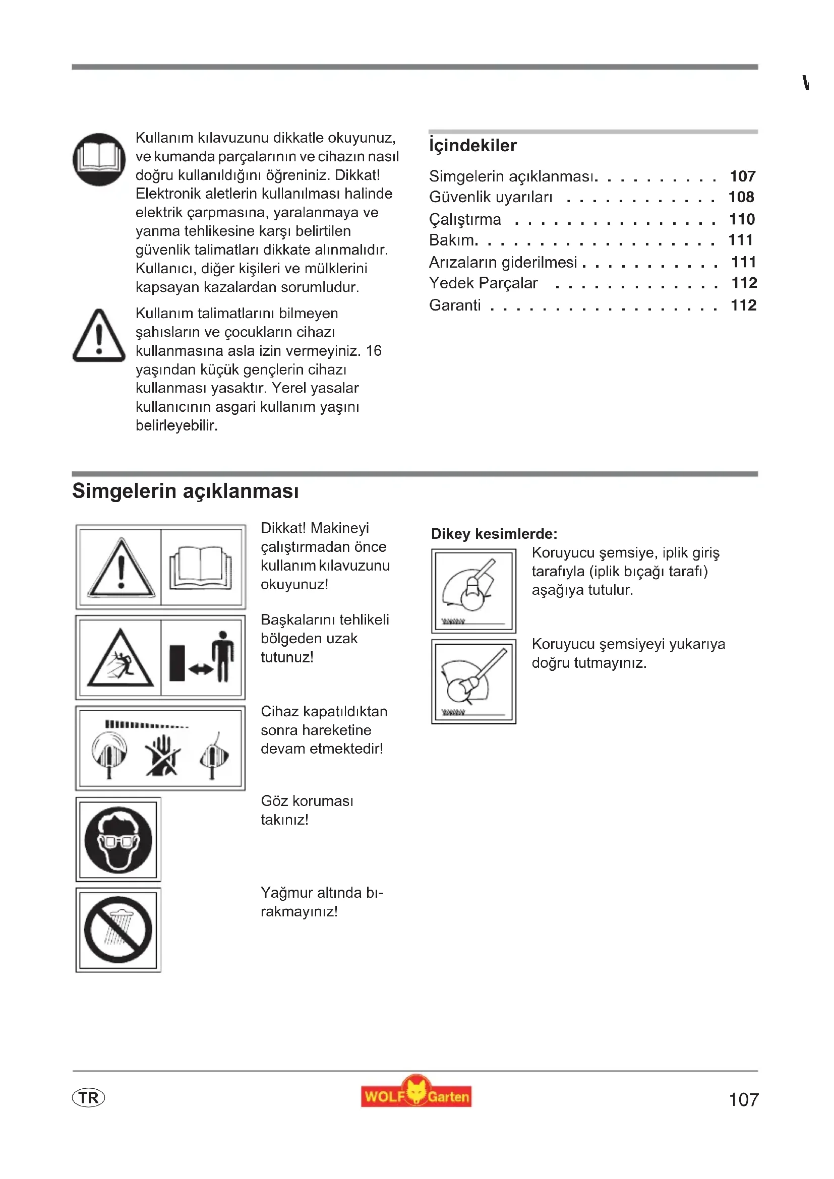 - TWOLF ürünlerini tercih etti¨iniz için teekkür ederiz ©çindekiler Simgelerin açXklanmasX p. 107