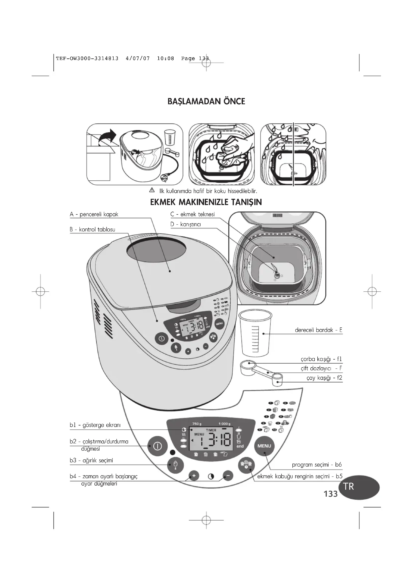 tırıcı program seçimi - b6 ekmek kabuğu renginin seçimi - b5 b1 - gösterge ekranı Ilk kullanmda hafif bir koku hissedilebilir.