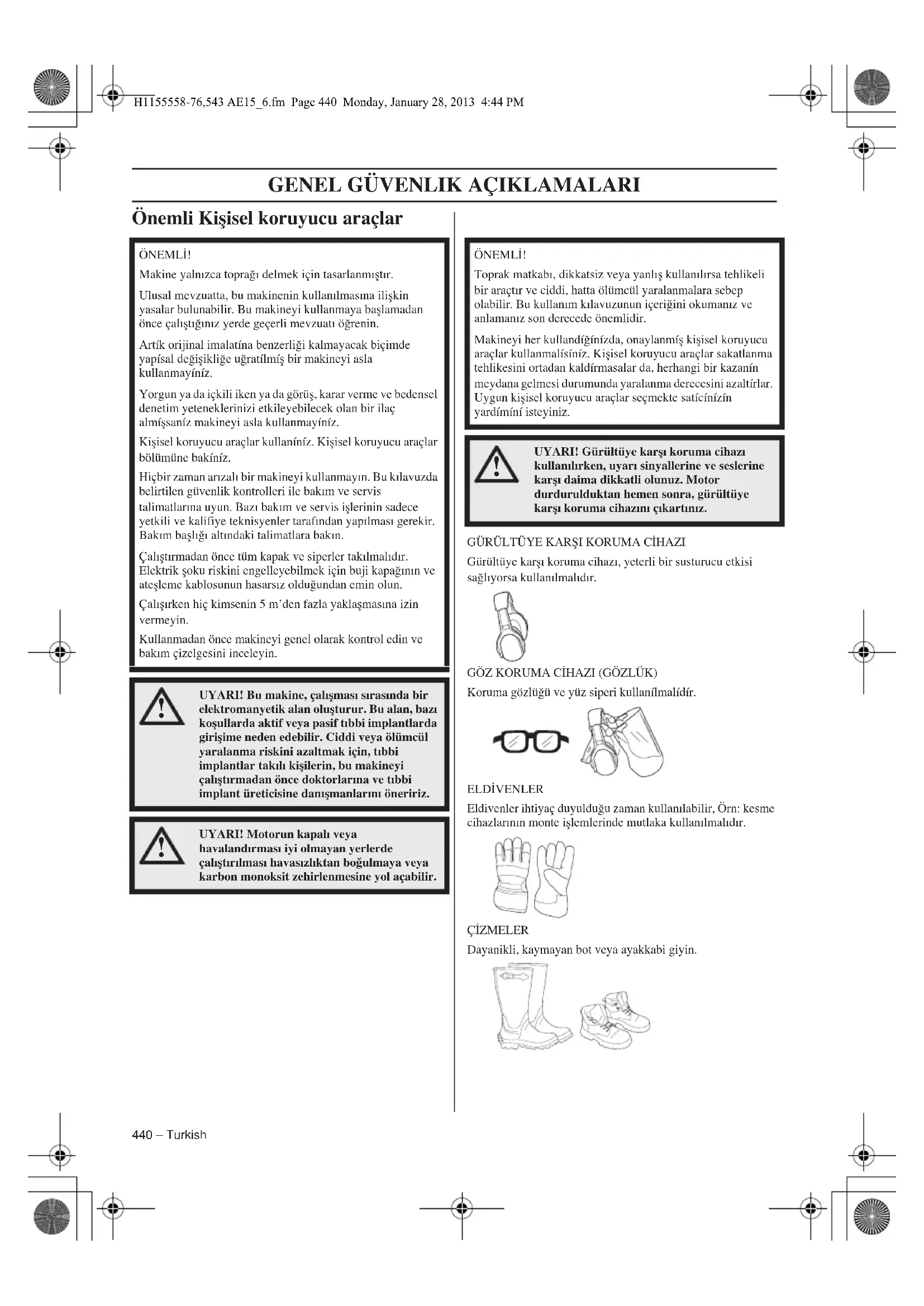 UYARI! Toprak matkabi, dikkatsiz veya yanlş kullamhrsa tehlikel bir araqtr ve ciddi,atta olumciil yaralanmalar sebep olabilir. Bu kullanim kulavuzunun icerigini okumanz ve anlamanz son derecede onemlidir.