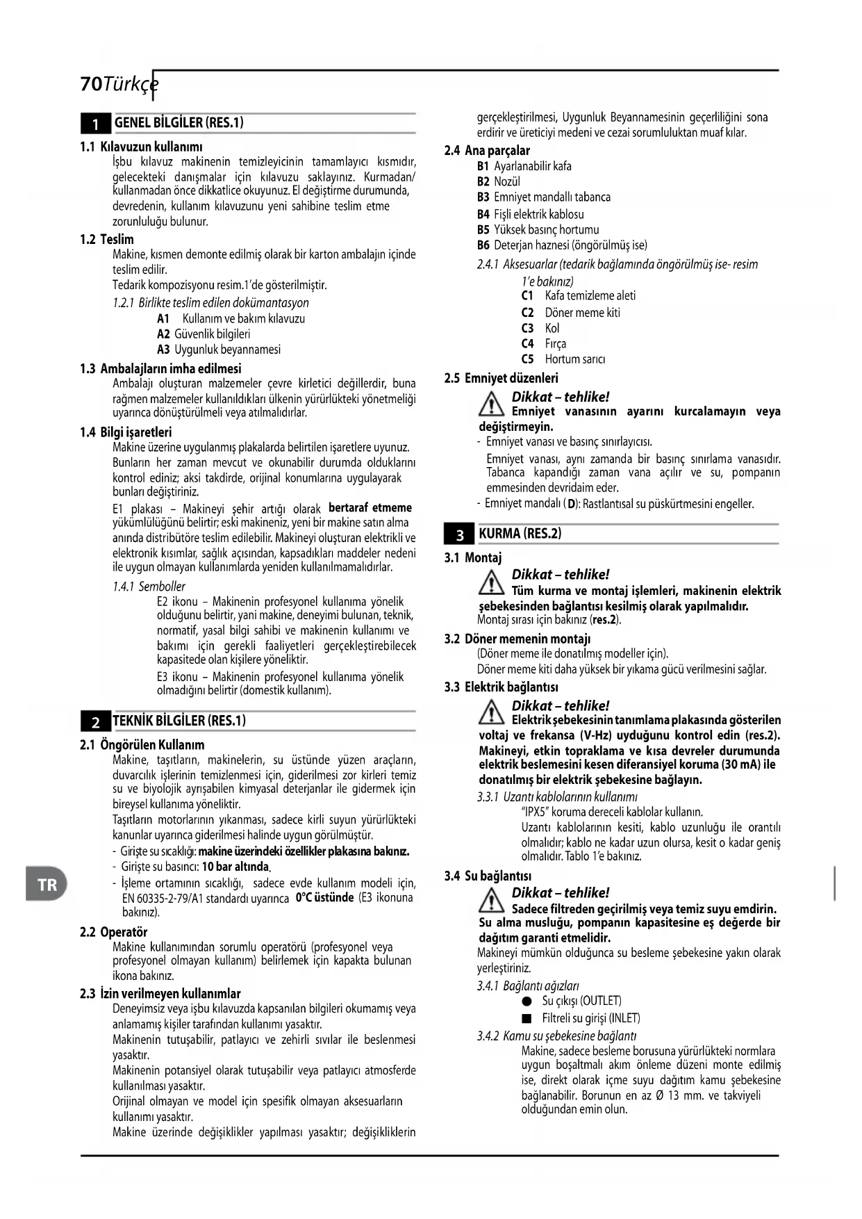 İşbu kılavuz makinenin temizleyicinin tamamlayıcı kısmıdır, gelecekteki danışmalar için kılavuzu saklayınız. Kurmadan/ kullanmadan önce dikkatlice okuyunuz. El değiştirme durumunda, devredenin, kullanım kılavuzunu yeni sahibine teslim etme zorunluluğu bulunur.