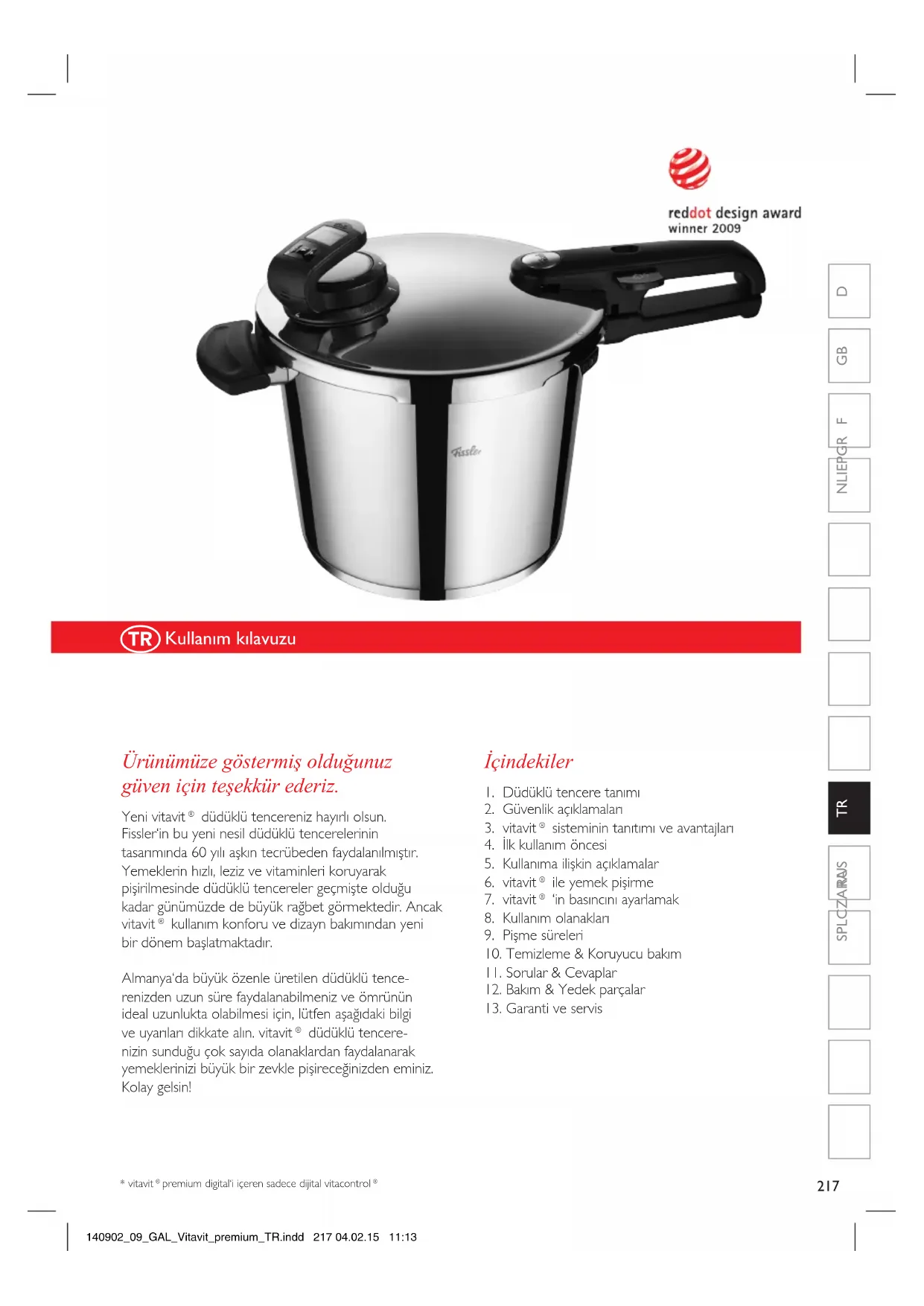 Vitavit Premium Digital - Tencere Fissler - Ücretsiz kullanım kılavuzu