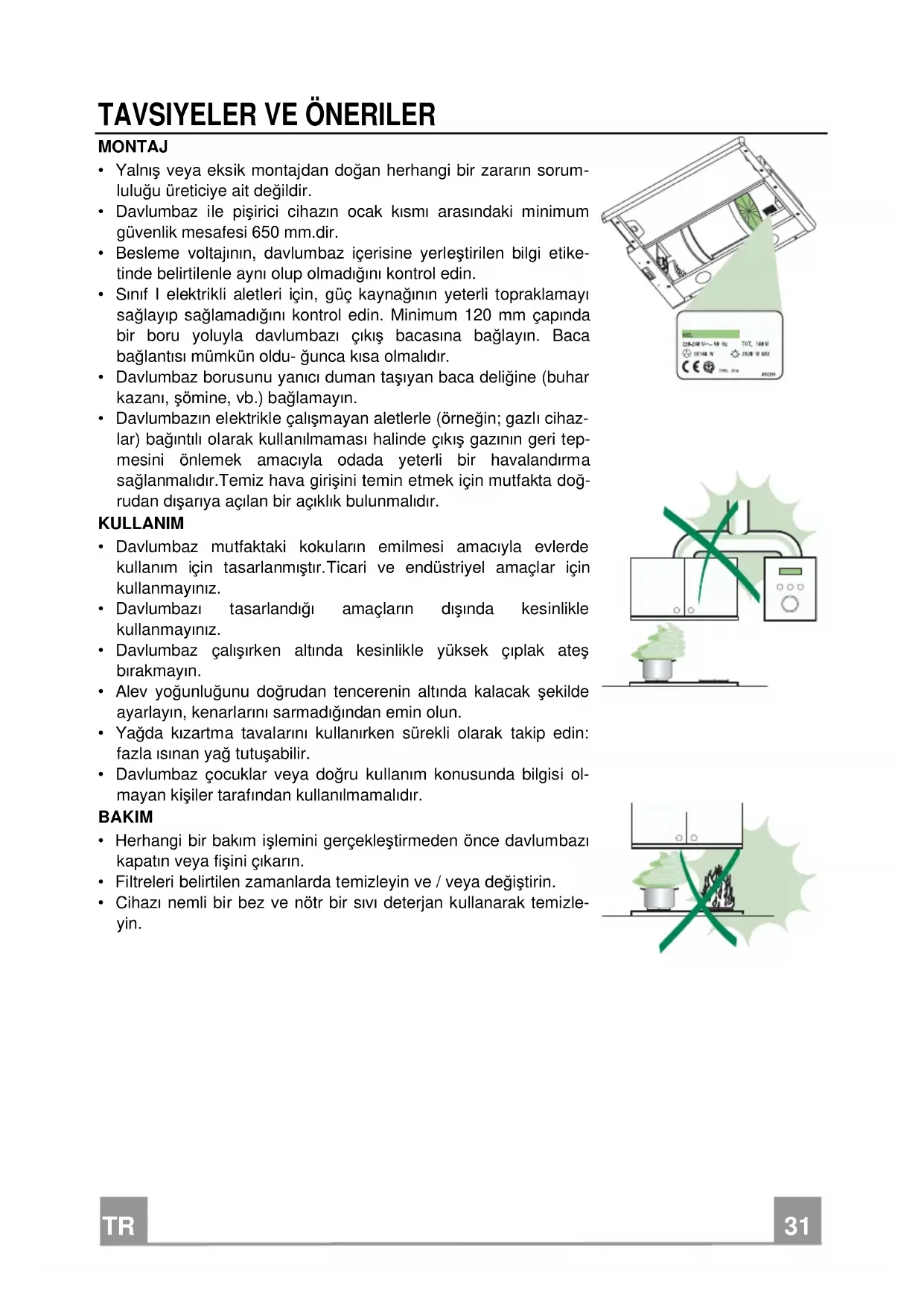 - Davlumbazι tasarlandιğι amaçlarιn dιşιnda kesinlikle kullanmayιnιz.