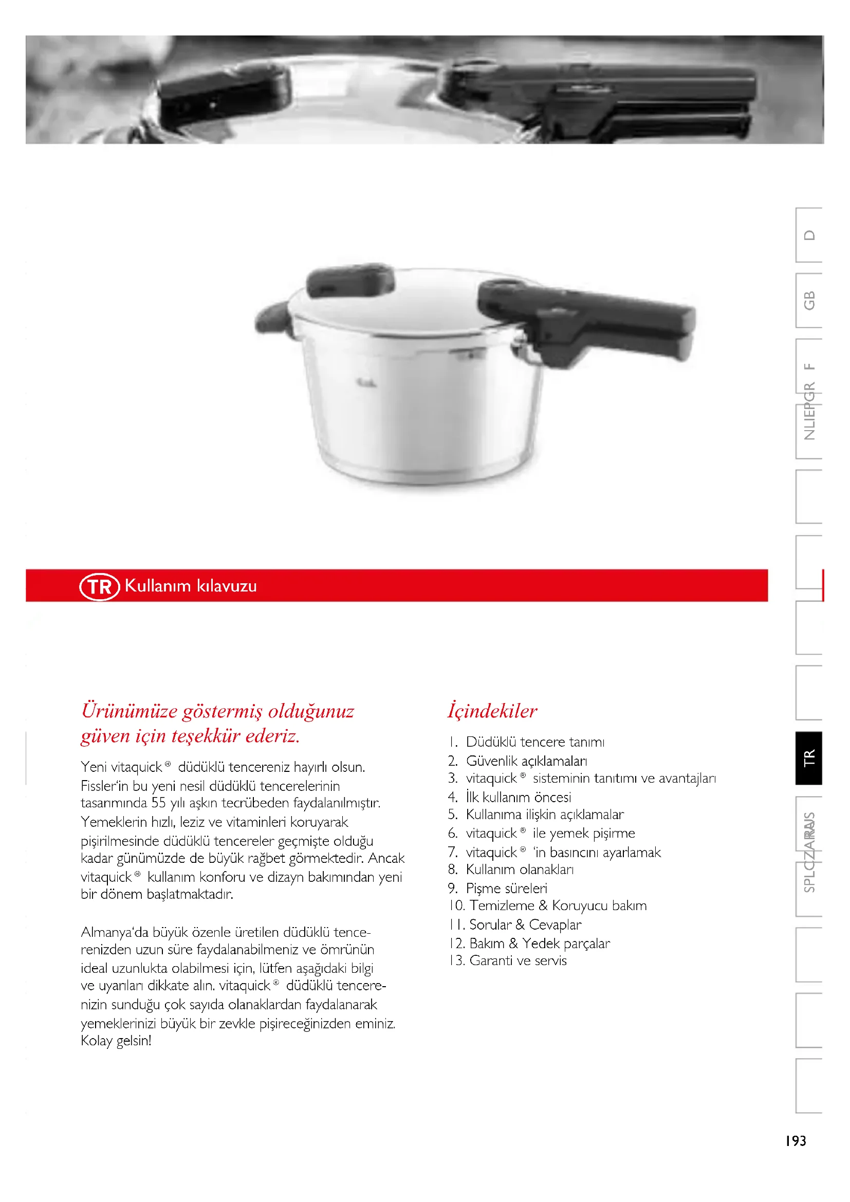 Almanya'da buyuk ozenle uretilen du.dkl'tencereziden uzun sure faydalanabilmeniz ve omrUnn ideal uzunlukta olabilmesi icin, luften asagidaki bilgi ve uyanlan dikkate aln. vitaquick ^念 dudklu tencerezin sundugu cok sayda olanaklardan faydalanarak yemeklerinizi buyuk bir zevkle piireceginizden eminiz. Kolay gelsin!