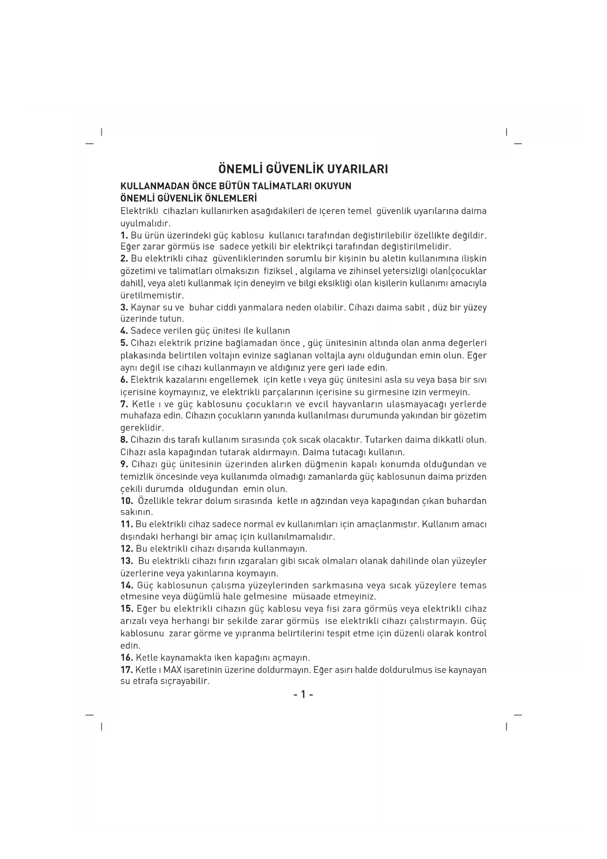 Elektrikli cihazlar› kullan›rken afla¤›dakileri de içeren temel güvenlik uyar›lar›na daima uyulmal›d›r.