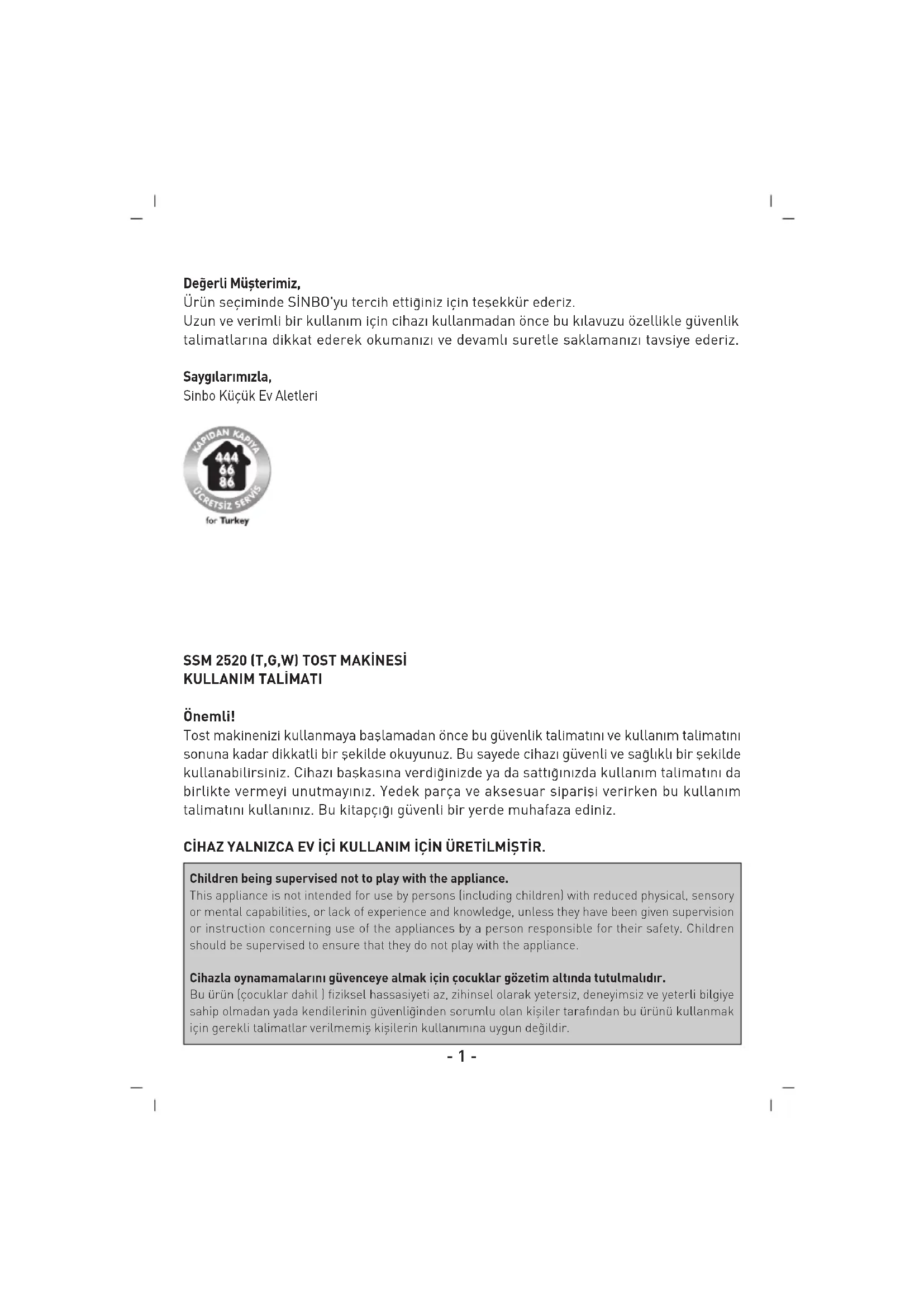 KULLANIM KILAVUZU SSM 2520 SINBO