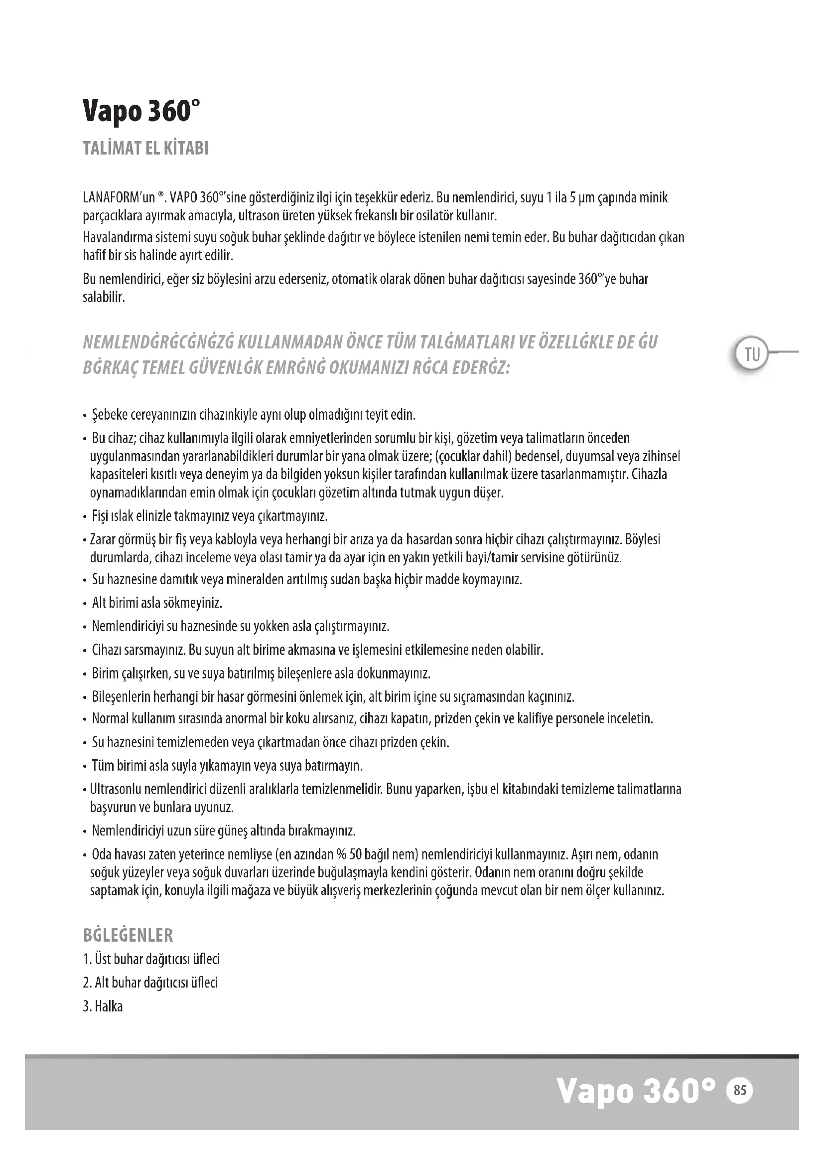 KULLANIM KILAVUZU Vapo 360 LANAFORM