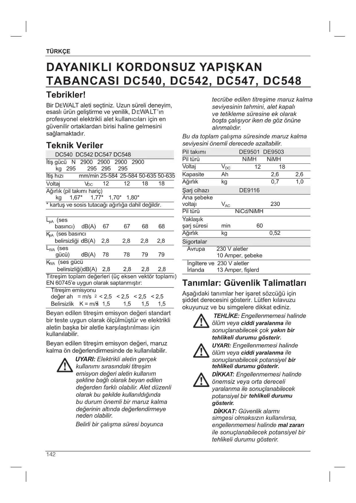 KULLANIM KILAVUZU DC548 DEWALT